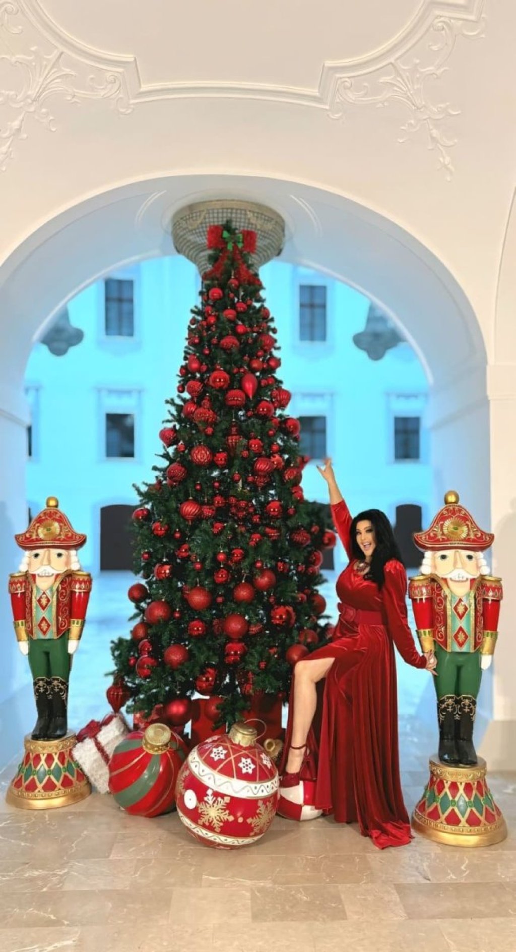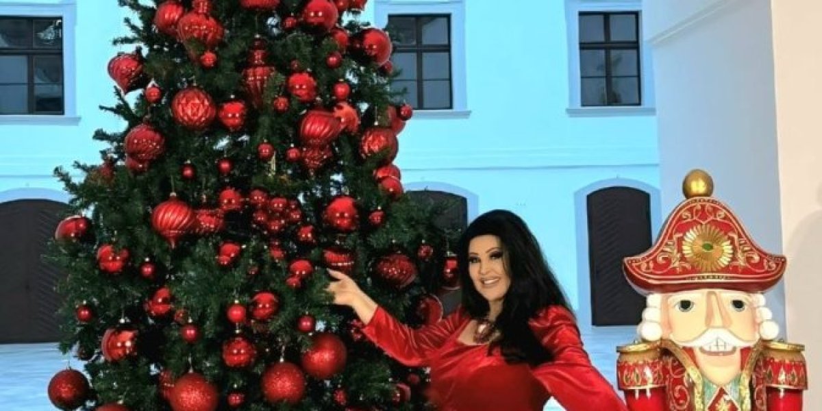 Dragana je pozirala pored jelke u crvenoj dugoj haljini od svile, sa dubokim šlicom. Jelka sa crvenim ukrasima, nalazi se u holu dvorca, dok je ona u dnevnoj sobi potpuno drugačije dekorisana, a nju je pokazala kada joj je nedavno u posetu došla Lepa Brena.