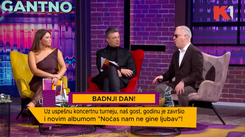 Večerašnja emisija "In3gantno" sa Sašom Matićem otvara Božićnu nedelju na K1 televiziji, koja se nastavlja velikim prazničnim intervjuima - na Božić publiku očekuje ekskluzivni razgovor sa Željkom i Jovanom Joksimović, dok je drugo veče Božića rezervisano za godišnji intervju sa Majom Berović. Badnje veče, iskrene priče, emocije, smeh i muzika - večeras od 20 časova na K1