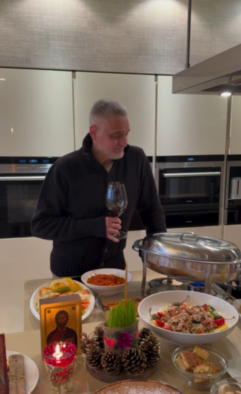 Aleksndar je snimio Čedu kraj stola punog posnih jela, a on je sa čašom u ruci ispričao kako provode praznik.