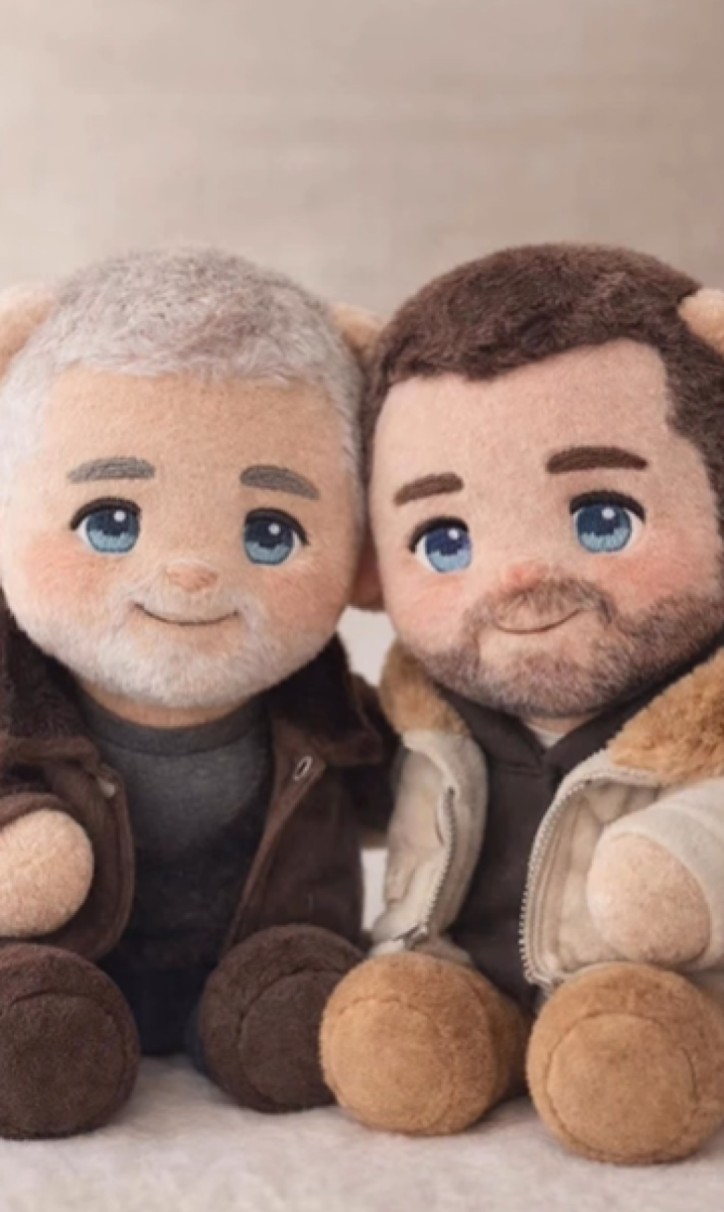 Lutkice, odevene u braon i bež tonove, sa Čedinom prepoznatljivom sedom kosom i Acinom bradom, zablistale su na Kosovom Instagram profilu, uz duhovit opis: