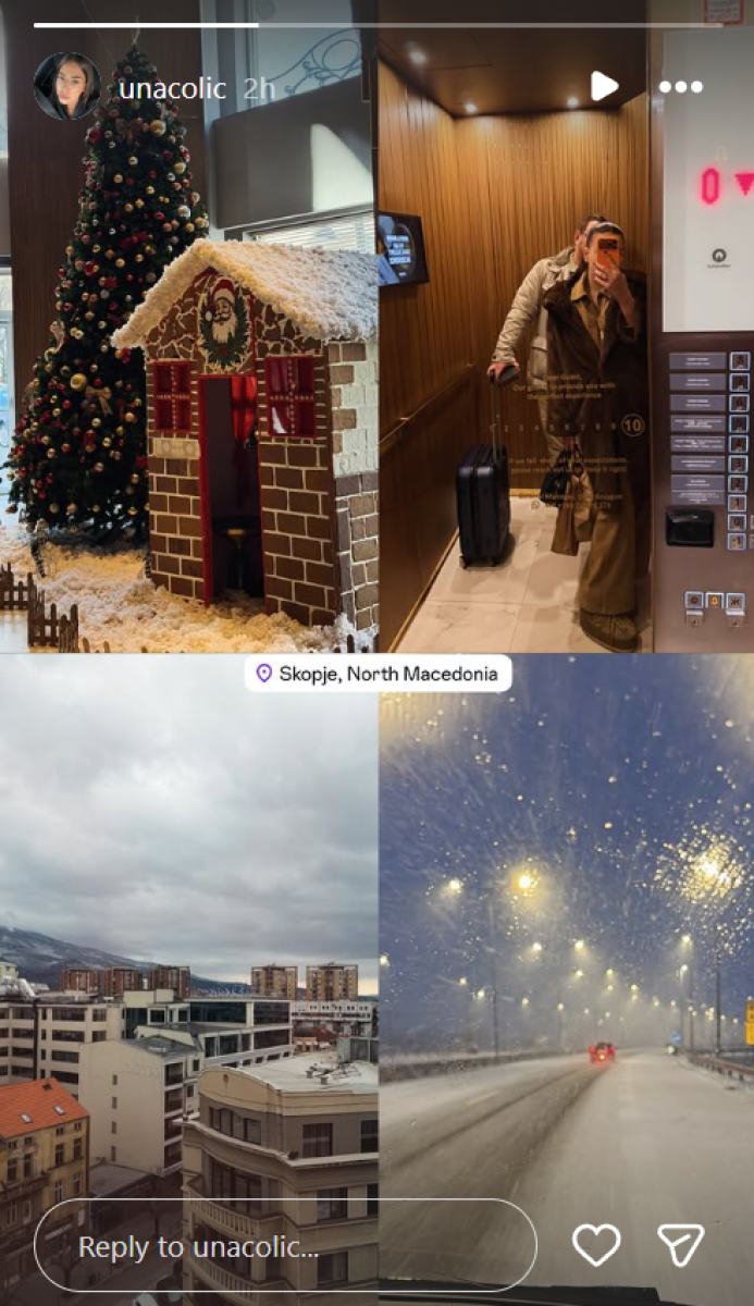 Na društvenim mrežama objavila je njihovu zajedničku fotografiju iz Skoplja, pokazavši da praznična atmosfera kod njih još uvek traje. Njih dvoje su pozirali u liftu, a sneg i hladno vreme ih nije sprečilo da uživaju u putovanju i zajedničkom vremenu.