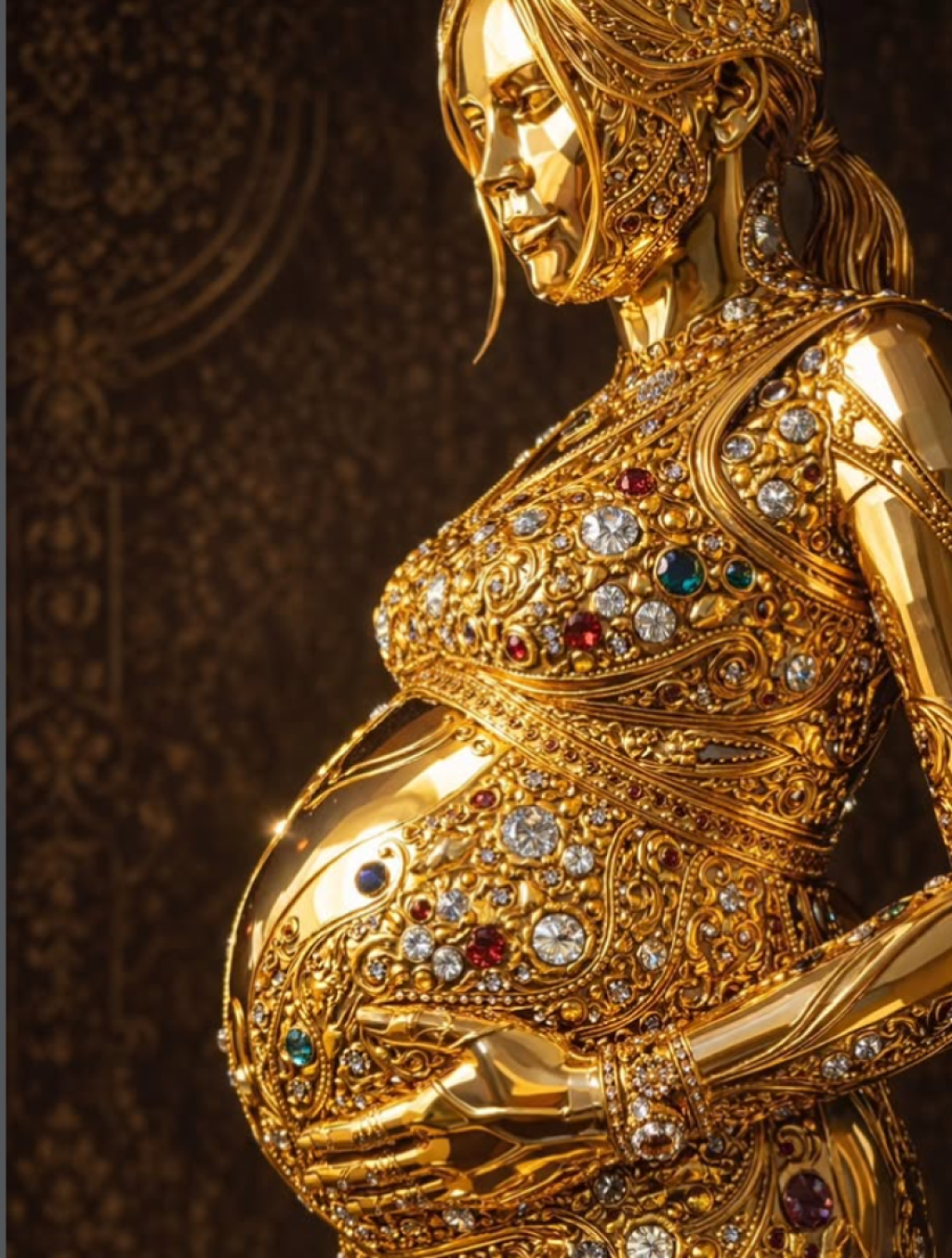 Trudnoća je prikazana kao najveći dragulj koji žena može nositi, dok zlato simbolizuje vrednost i nešto dragoceno.
