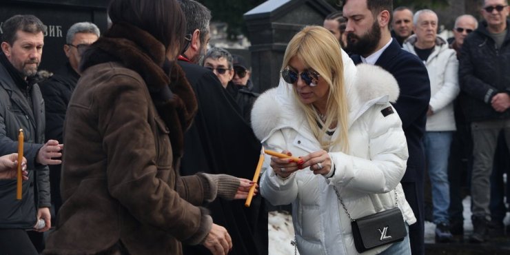 Pomen Željku Ražnatoviću Arkanu održan je danas na Novom groblju, a njegova udovica Ceca Ražnatović pristigla je u pratnji snaje Bogdane i Bogdaninog i Veljkovog sina Željka, koji nosi dedino ime. Njih dvoje se ne odvajau od pevačice, koja je sve vreme na licu imala crne naočare za sunce.