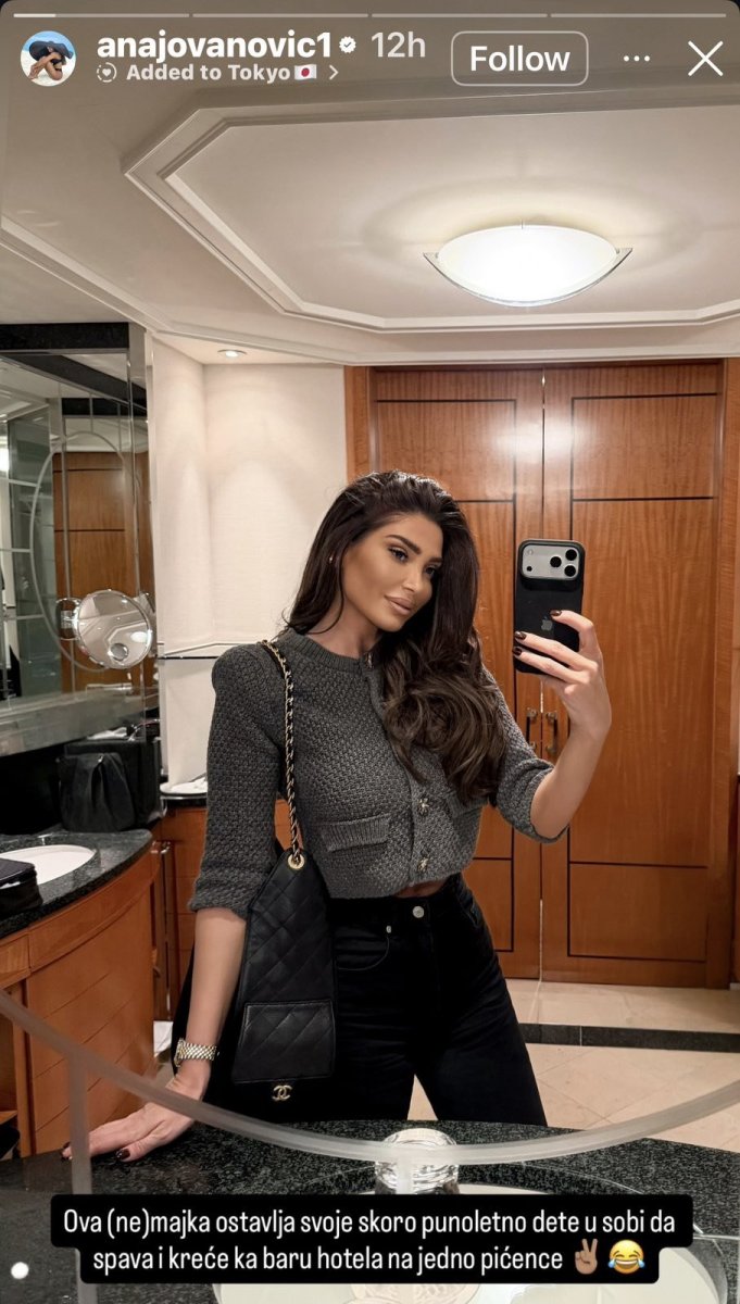 "Ova (ne) majka ostavlja svoje skoro punoletno dete u sobi da spava i kreće ka baru hotela na jedno pićence", objavila je Ana na svom Instagramu.