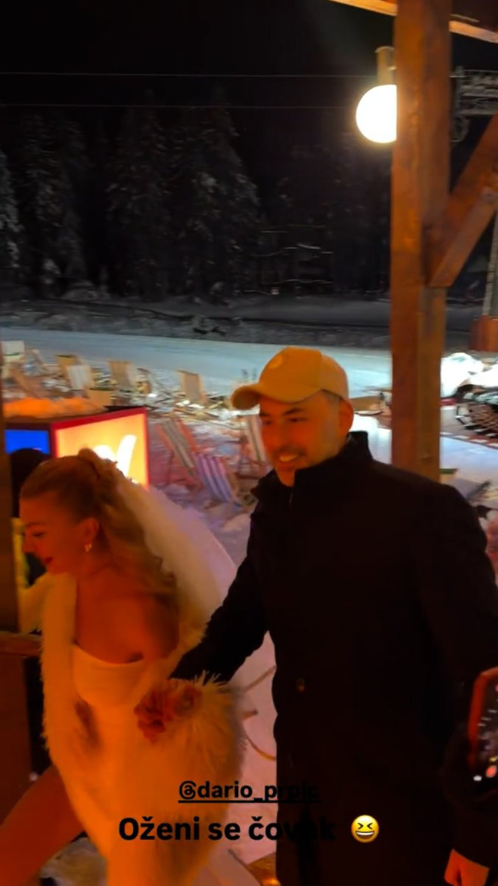 Mlada je blistala u venčanici koja je istakla njene vitke noge i elegantnu figuru, dok je Dario Prpić, u nešto opuštenijem izdanju, ceremoniji prisustvovao sa kačketom na glavi.