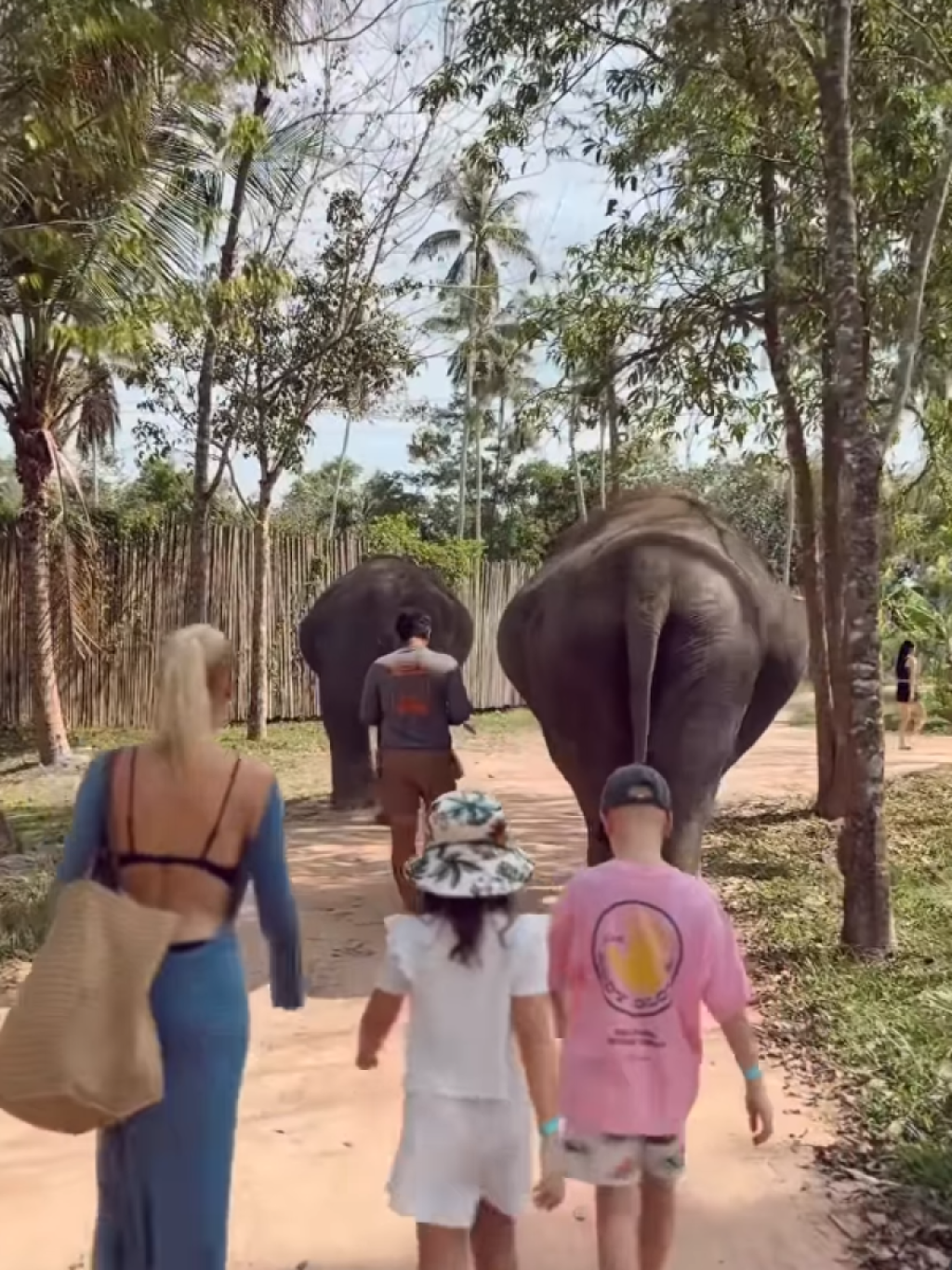 Porodična avantura nastavila se i nesvakidašnjim iskustvom - šetnjom sa slonovima, što je izazvalo posebno oduševljenje.