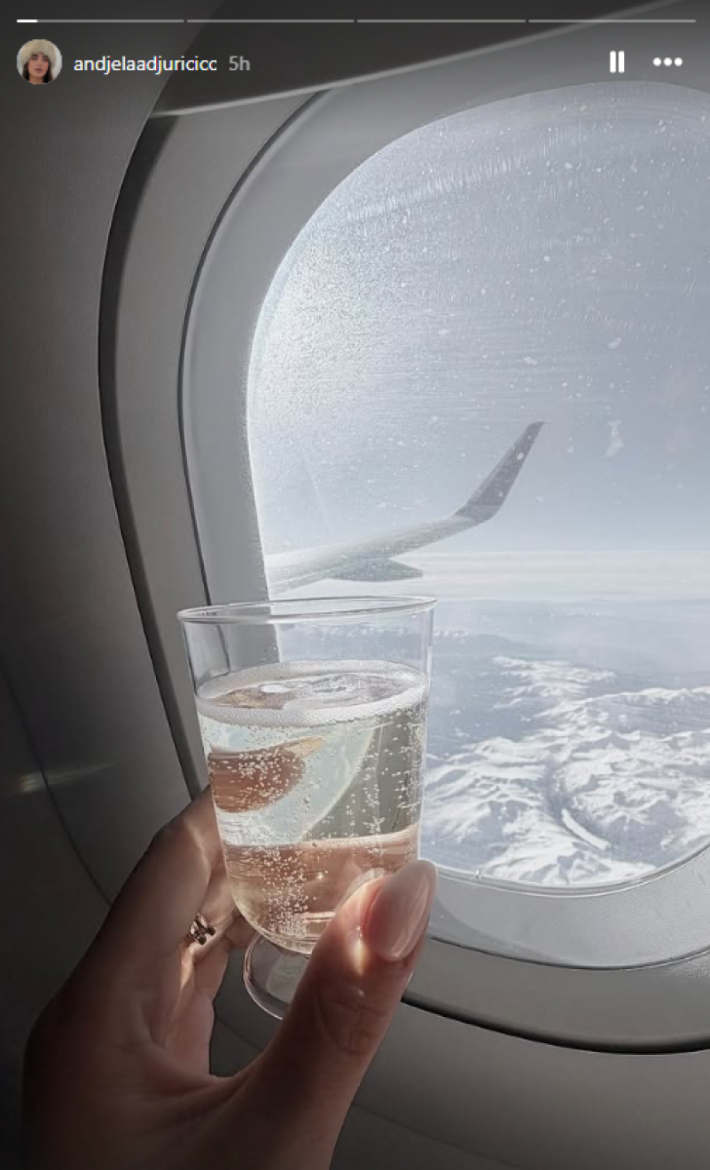 Anđela je neko vreme živela sa Gastozom, ali je sada odlučila da napravi pauzu i ode na odmor izvan Srbije. Na svom Instagram profilu, Anđela je prvo podelila fotografije iz aviona, pokazujući kako uživa u putovanju ispijajući penušavo vino.