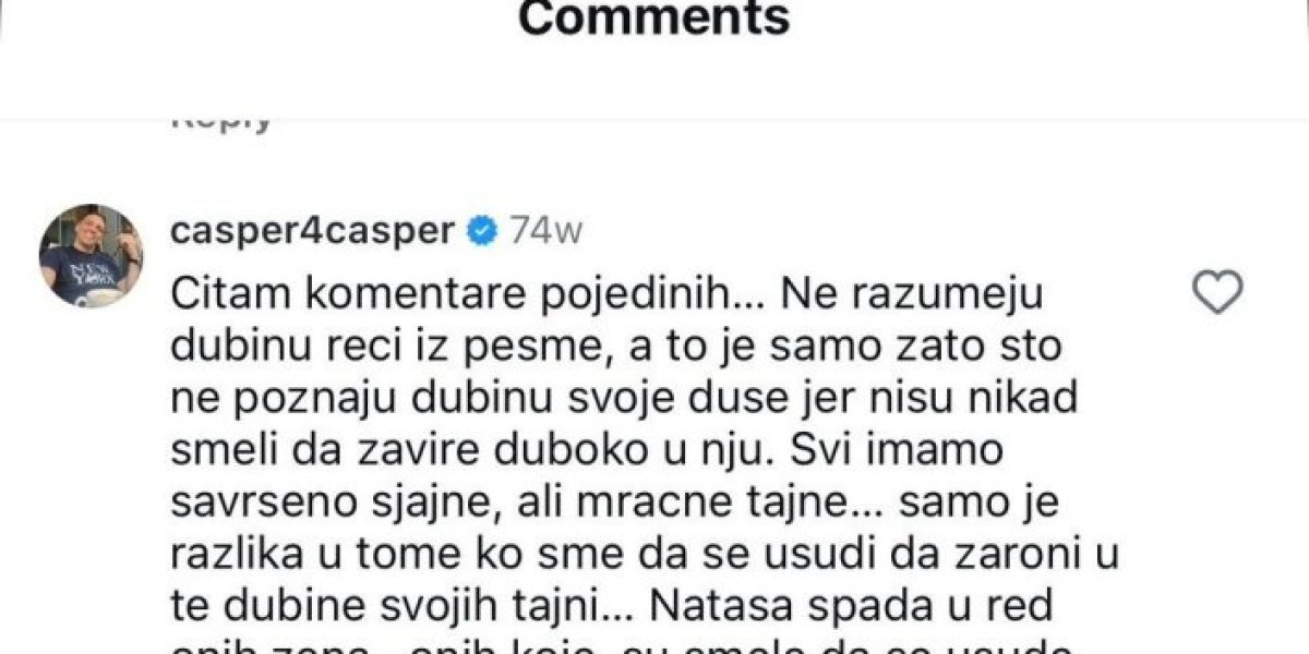 Dečko Mine Kostić, Mane Ćuruvija, poznatiji kao Kasper, opsedao je pevačicu Natašu Bekvalac komentarima na društvenim mrežama.