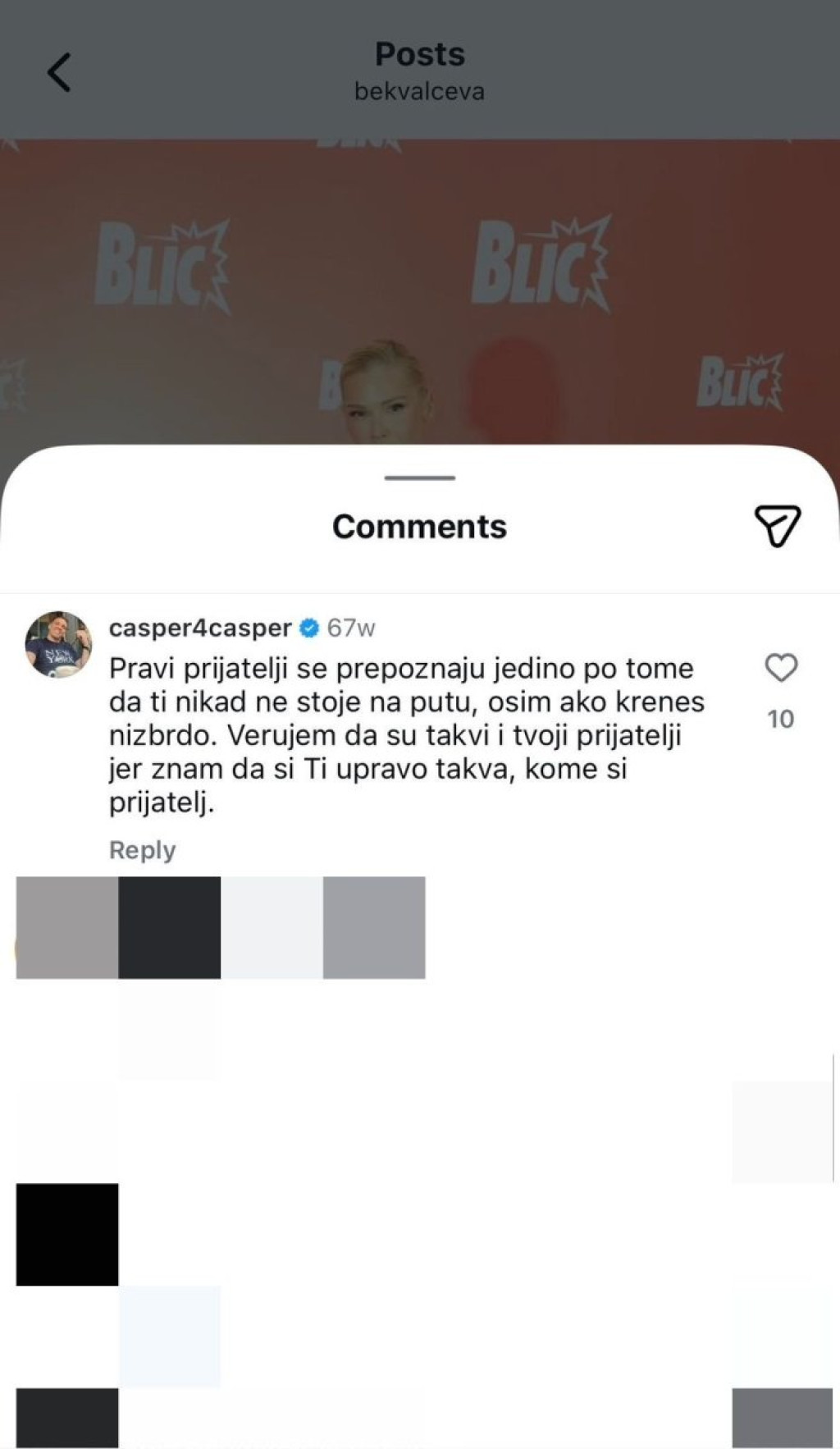 Nakon što se u javnosti pojavila prepiska u kojoj Kasper tvrdi da želi da oženi Bekvalčevu, Informer je našao komentare koje je on ostavljao ispod njenih fotografija, uglavnom tokom 2024. godine.