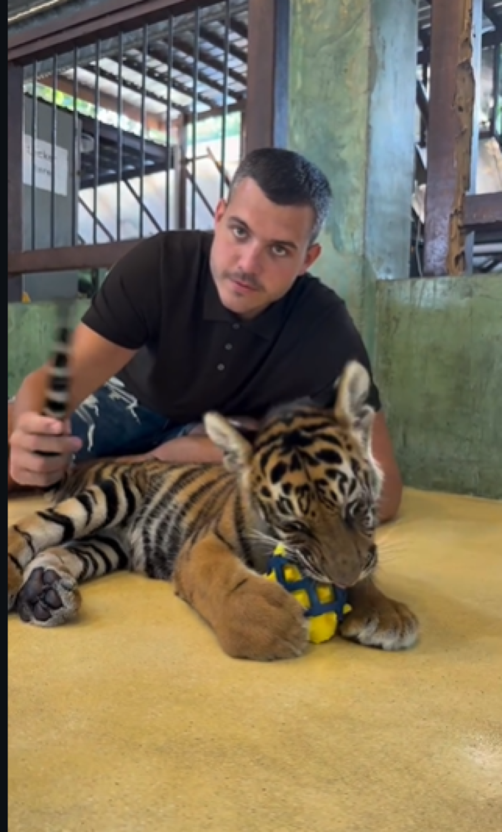 Fotografije i video zapisi nastali su, kako se može zaključiti, u jednom od turističkih centara gde posetioci imaju priliku da se približe divljim životinjama, a Lepa Brena među prvima je lajkovala snimak, na kom se njen sin igra sa tigrom.
