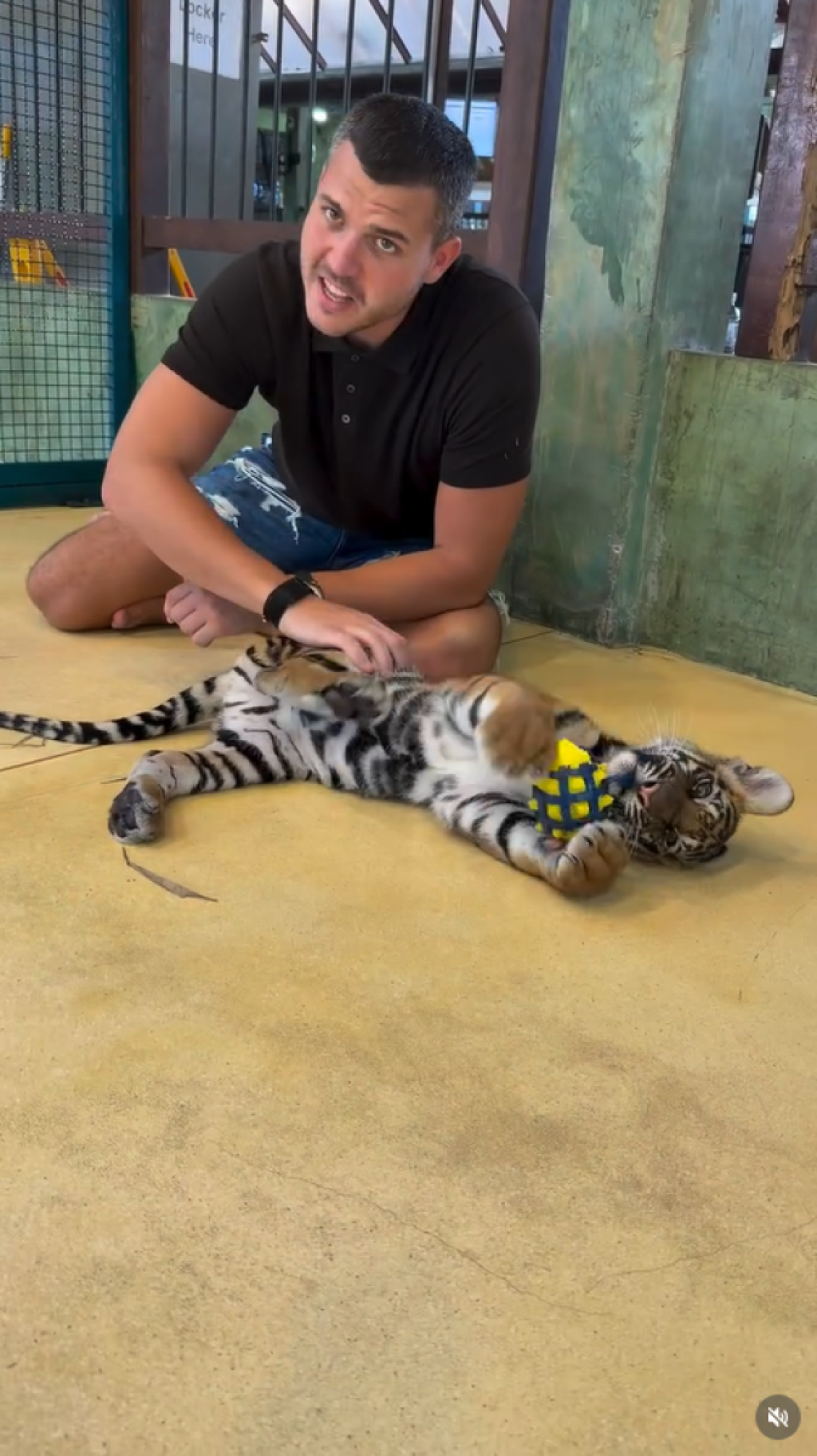 Na snimku koji je podelio vidi se da je bez imalo straha prišao mladunčetu divlje životinje, dok tigar mirno reaguje na njegov dodir.