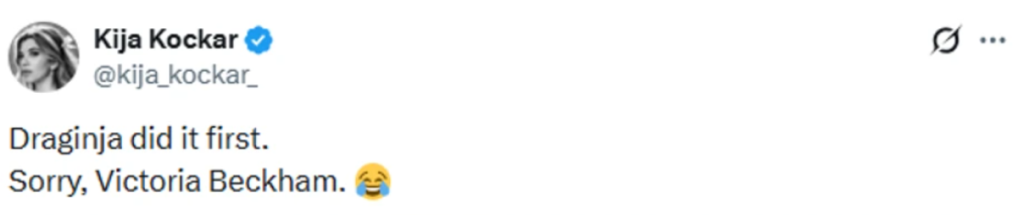 "Draginja did it first. Sorry, Victoria Beckham (Draginja je to uradila prva! Izvini, Viktorija Bekam)" - napisala je Kija Kockar na mreži Iks.