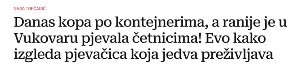 Naslov članka glasio je: "Danas kopa po kontejnerima, a ranije je u Vukovaru pevala četnicima! Evo kako izgleda pevačica koja jedva preživljava".