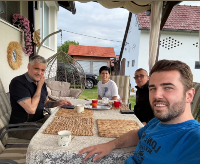 Aleksandar Kos, prijatelj Čede Jovanovića, koji već neko vreme živi sa političarem i koji je nedavno podelio fotografiju na kojoj je Čeda bez odeće, ustao je mrzovoljan jer ga je probudilo lupanje i buka u kući, a onda je snimio cimera kako u kuhinji sprema svoj specijalitet - magičnu pitu.