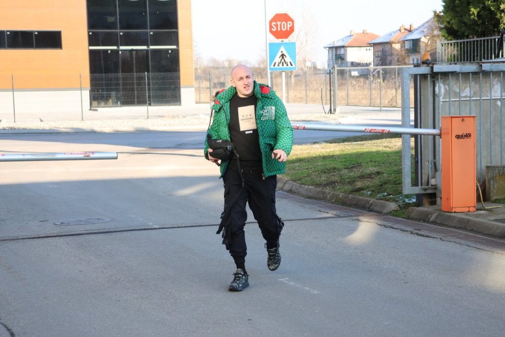Dragomir je, po izlasku iz automobila, pretrčao preko travnjaka jer je očigledno kasnio na snimanje.
