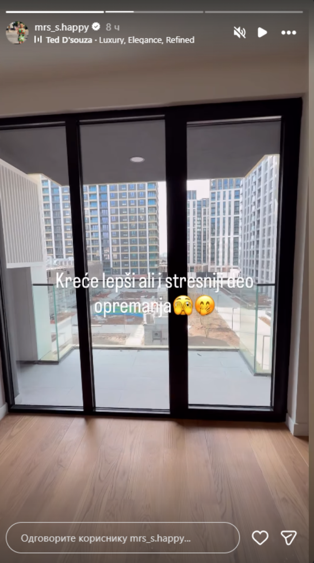 "Dugo sam sanjala o ovom danu... Nekad kroz suze, nekad kroz strah, a nekad kroz tihe molitve da mi se ipak desi. I desilo se. Druga nekretnina i to baš ovde", poručila je Sanja, pa dodala: