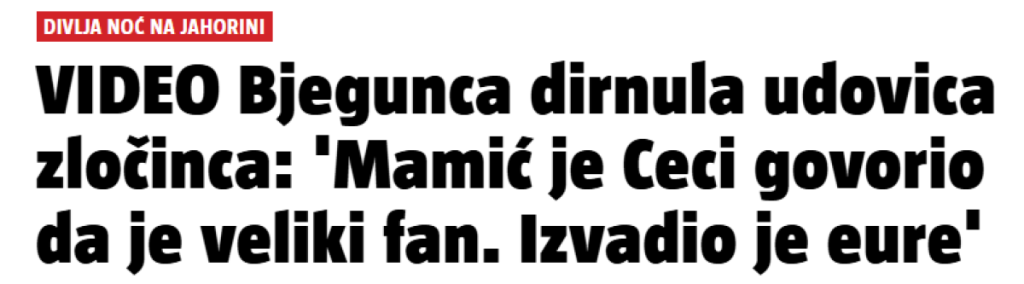 "Begunca dirnula udovica zločinca: Mamić je Ceci govorio da je veliki fan. Izvadio je eure".