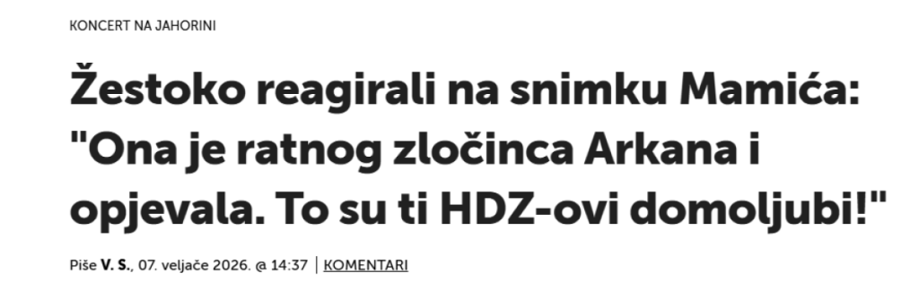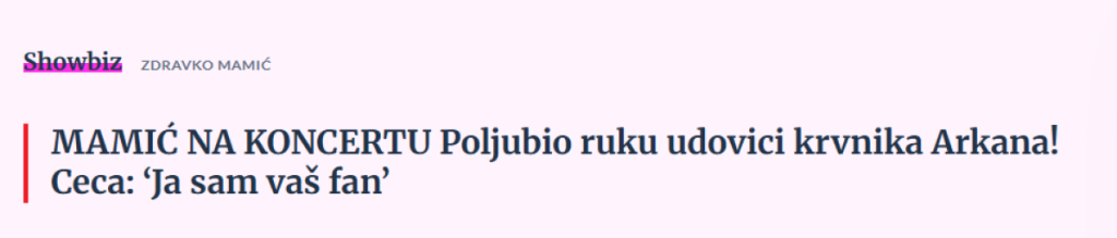 Međutim, umesto da se fokusiraju na muzički događaj, atmosferu ili činjenicu da je koncert protekao bez ikakvih incidenata, hrvatski portali su ponovo posegnuli za starim narativima i uvredljivim kvalifikacijama, posebno kada je reč o Ceci i njenom pokojnom suprugu Željku Ražnatoviću Arkanu.