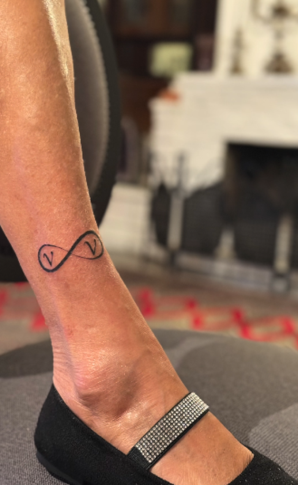 Verica je na nozi istetovirala simbol beskonačnosti sa dva slova V, koja predstavljaju njihove inicijale.