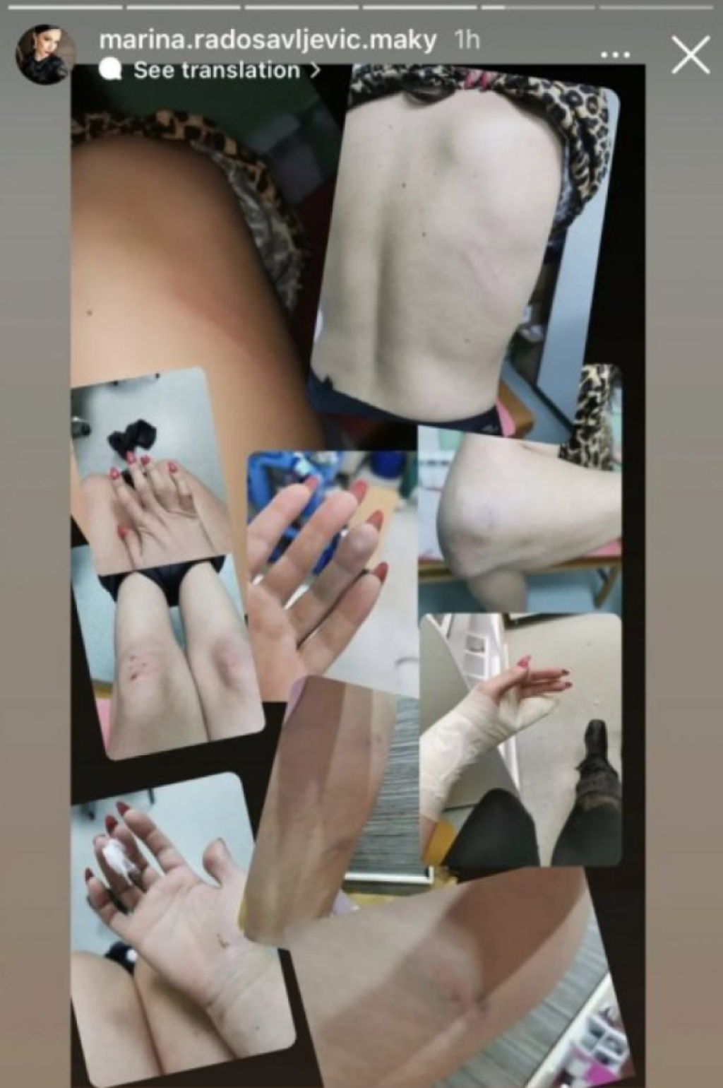 Marina je objavila fotografije svog tela na kojima se vide brojne povrede leđa, nogu i ruku.