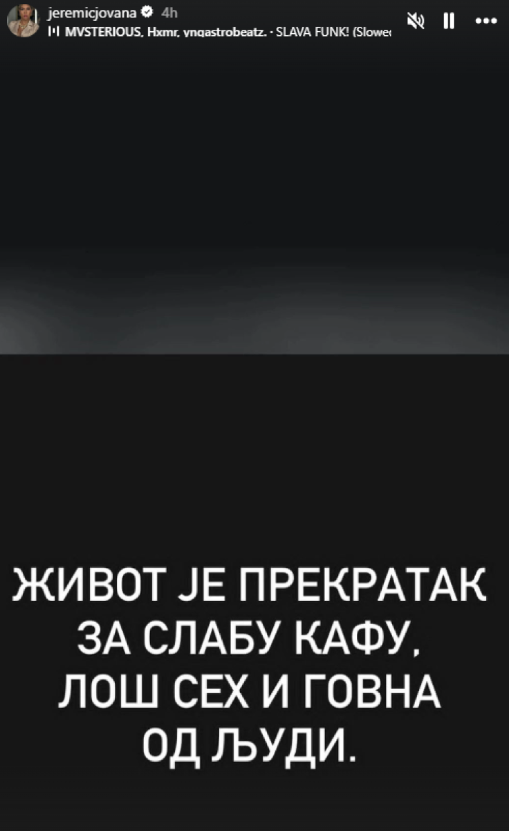 Filozofiju svog života često deli na društvenim mrežama i u emisijama, a tako je bilo i ovoga puta. Naime, Jovana Jeremić oglasila se na Instagramu, pa objasnila na šta ne želi da gubi vreme.