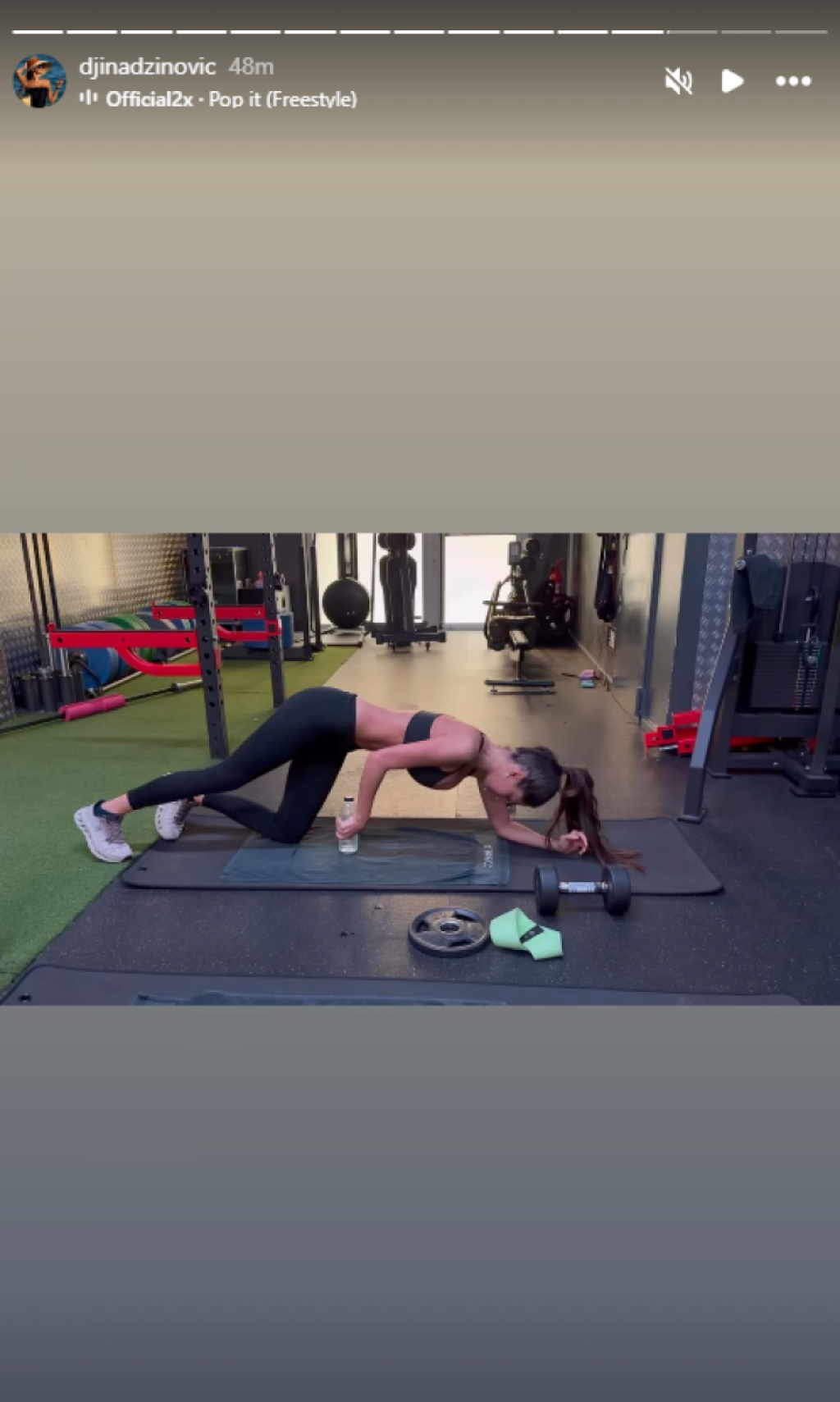 Tu se nije zaustavila, kada je Đina potom demonstrirala i vežbe za zadnjicu. U jednom trenutku podigla je nogu i pokazala mišićavu i zategnutu figuru, ističući rezultate napornog rada u teretani.