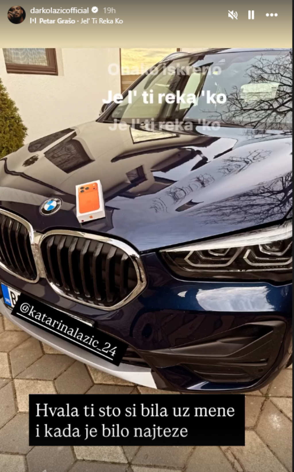 Darko, koji je odlučio da batali alkohol i promeni svoj način života, je kupio Katarini automobil marke "BMW" koji je parkirao u dvorište porodične kuće, a na haubi je stajao i novi mobilni telefon. Darko joj je napisao i prikladnu poruku.