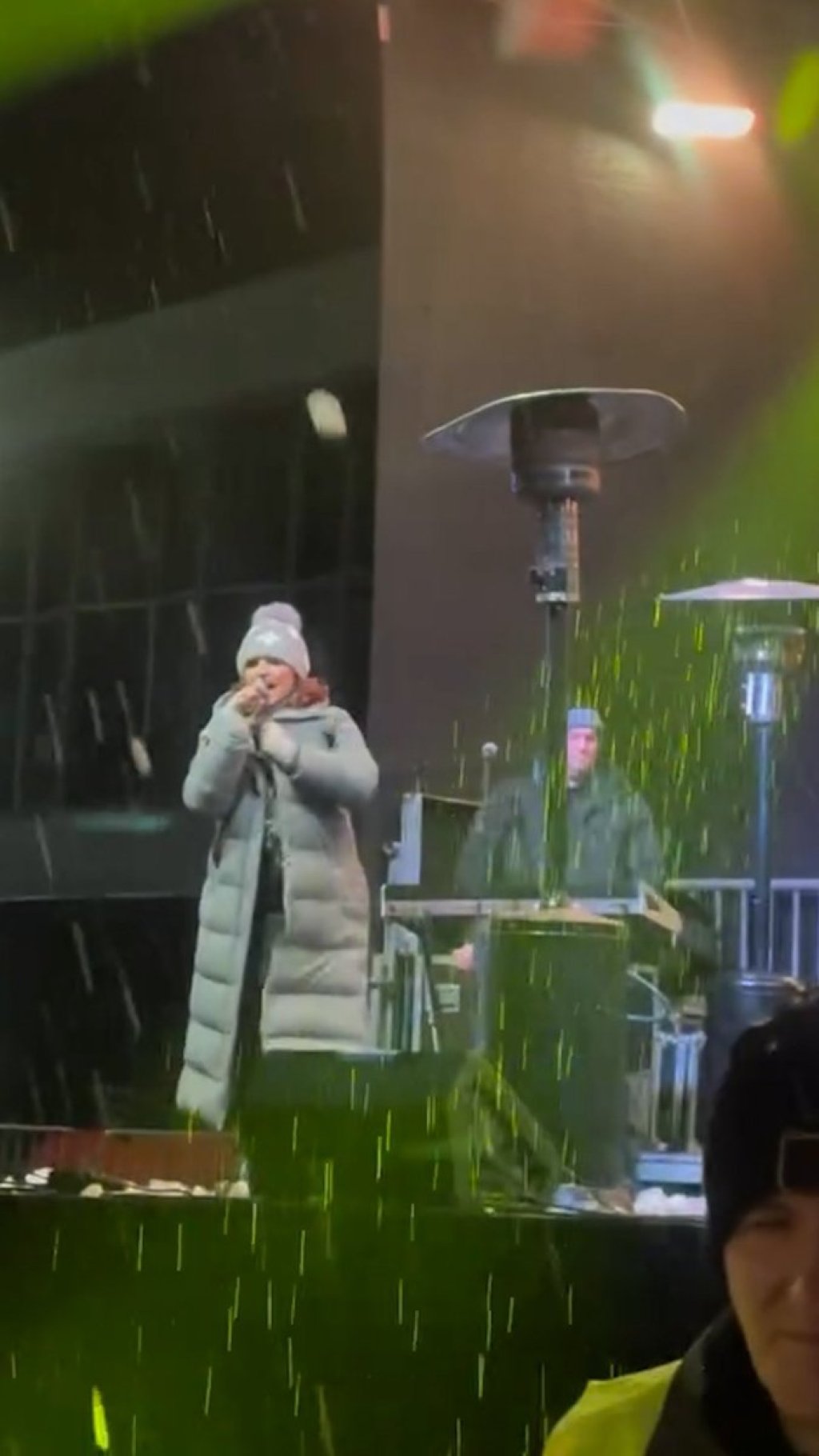 Međutim, zbog grudvi koje su konstantno letele bila je prinuđena da siđe sa bine, ali je nastup završila kao pravi profesionalac pevajući iz kombija.