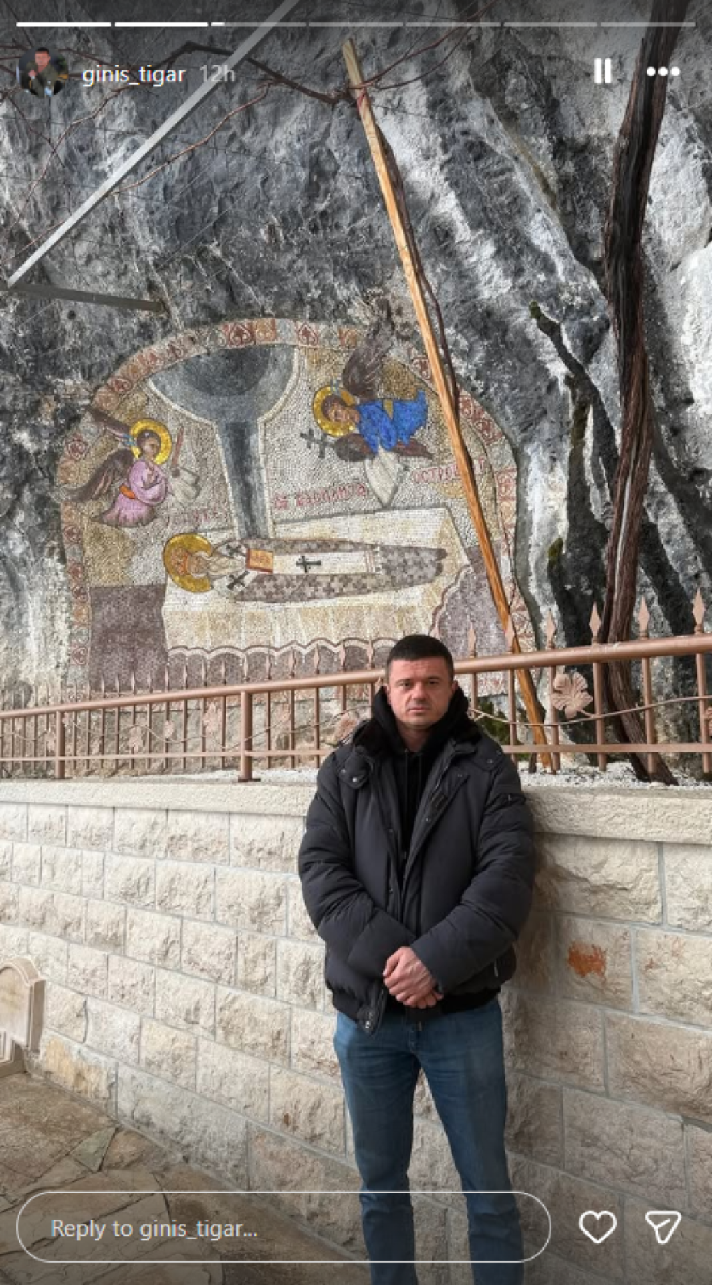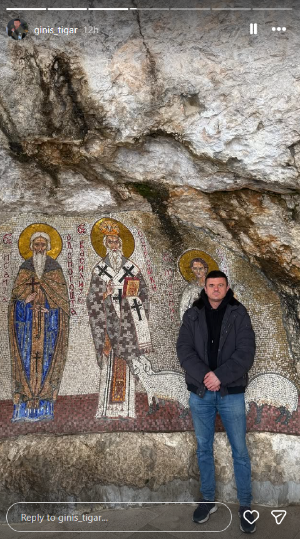 Tigar se oglasio na društvenim mrežama i podelio fotografije iz Ostroga, na kojima pozira pored fresaka, dok Jovana, sudeći po objavama, nije bila sa njim na ovom putovanju.