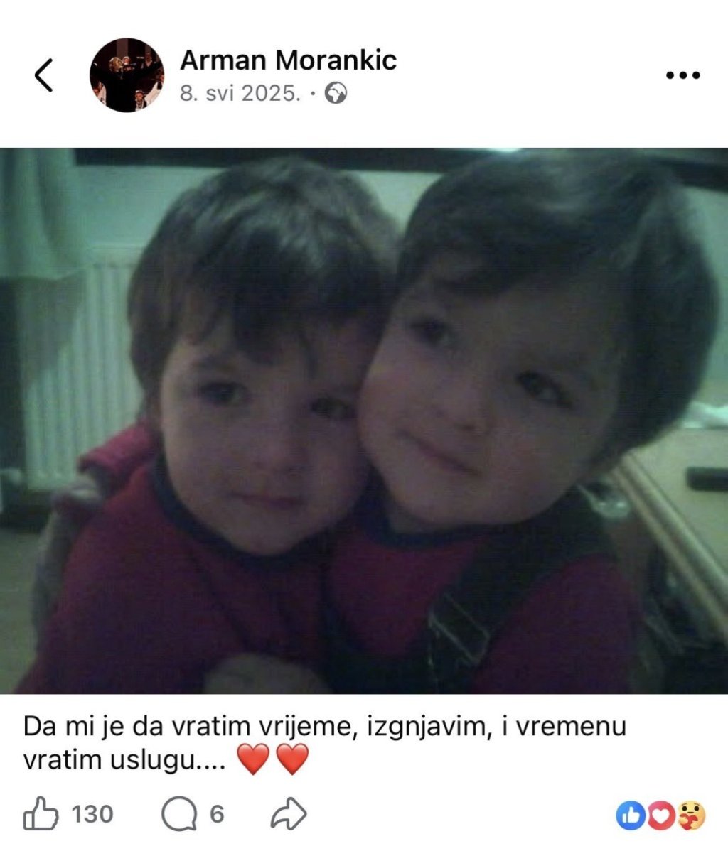 Pre samo nekoliko meseci, Arman je sa pratiocima na Fejsbuku podelio fotografiju blizanaca kad su bili mali, a emotivnom objavom raznežio i rasplakao mnoge.