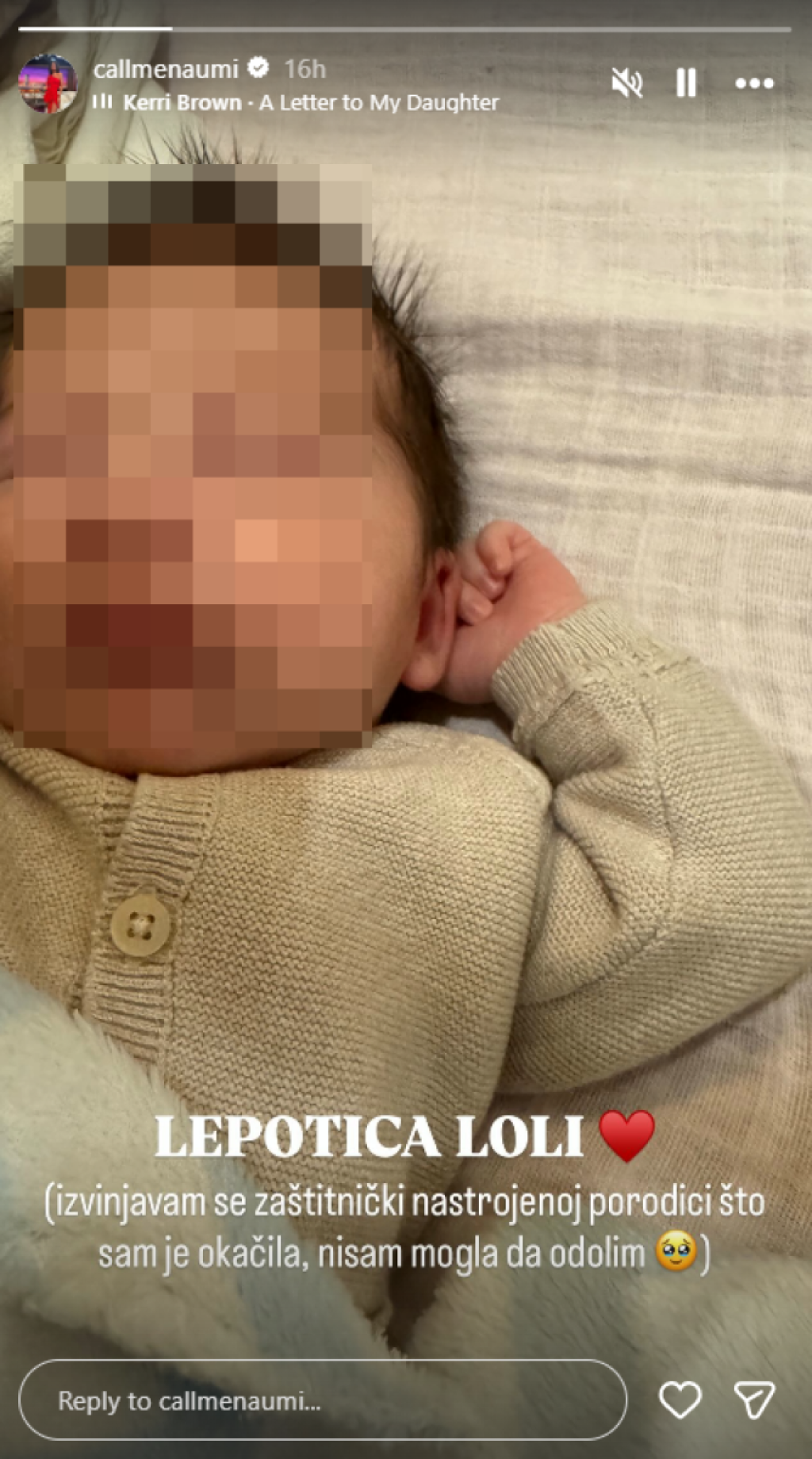 Mina je na Instagramu podelila fotografiju naslednice dok bezbrižno spava, a emotivan prizor, kako je i sama priznala, nije je ostavio ravnodušnom.