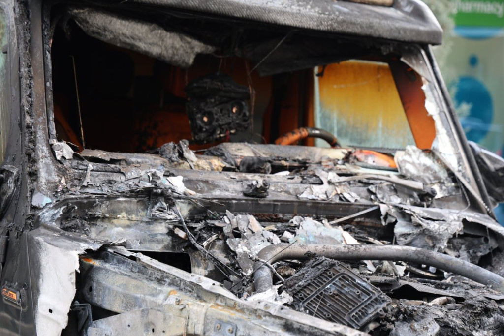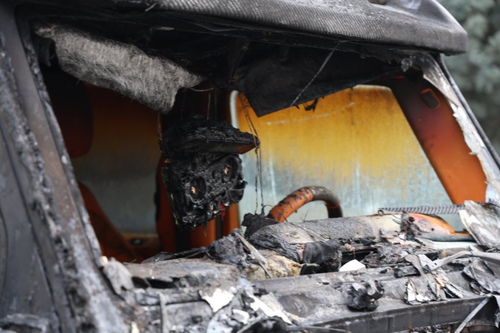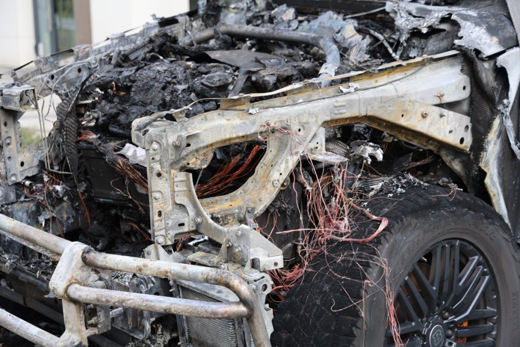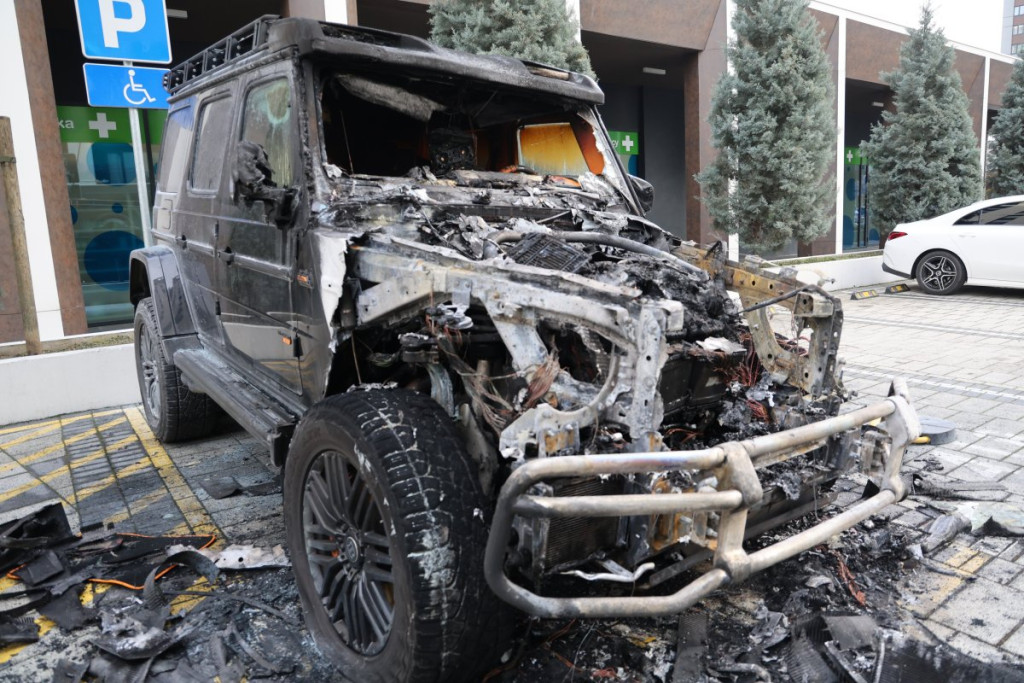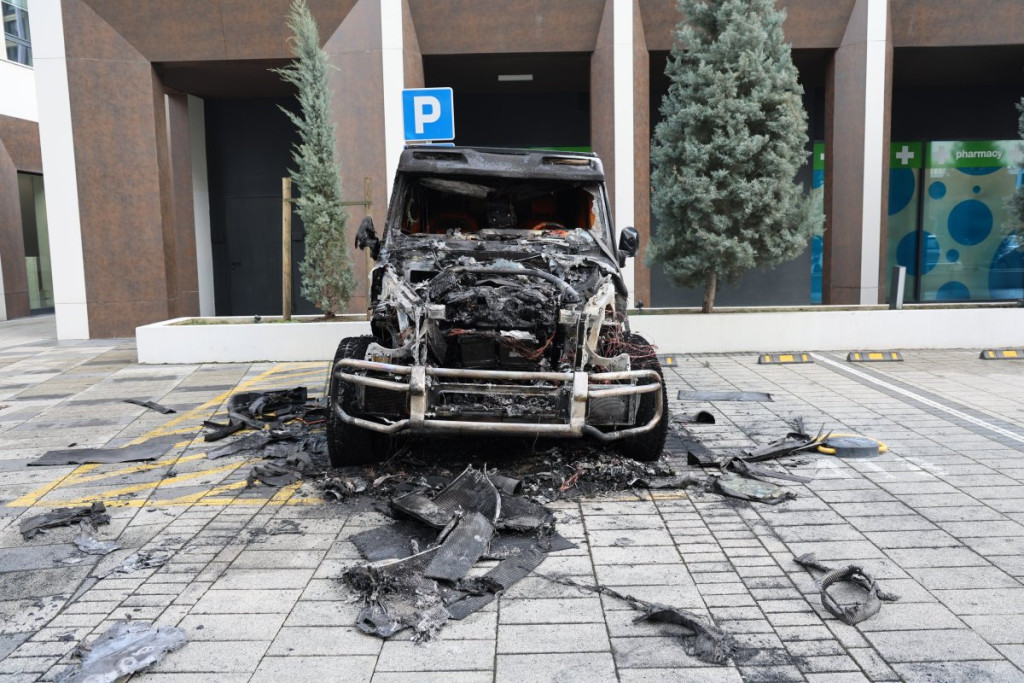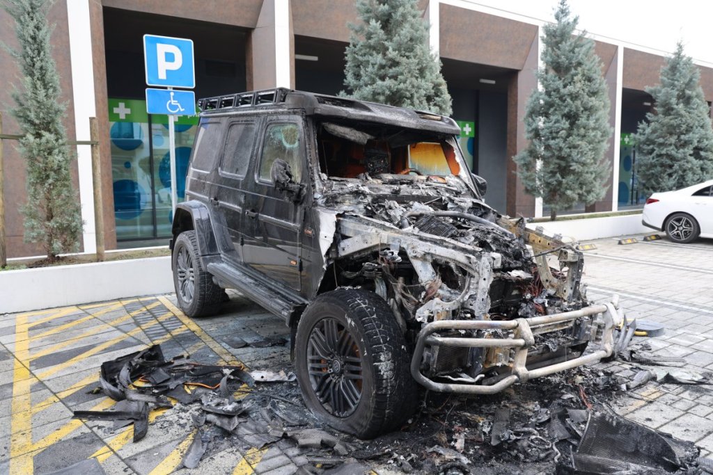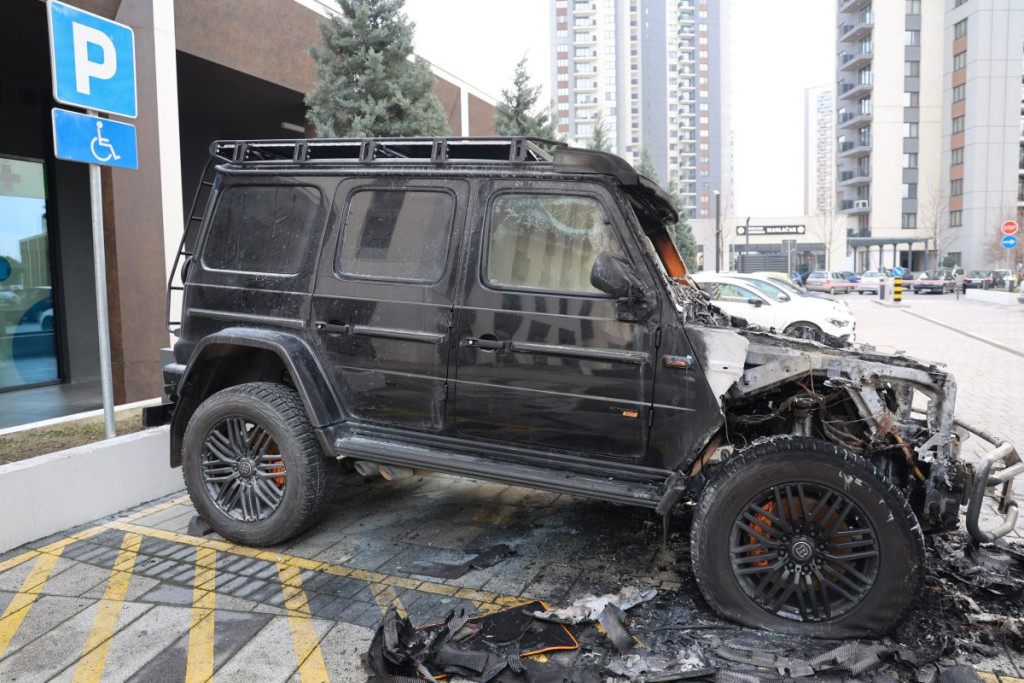 Ispred zgrade, na parkingu, zatekli smo garež, uništeno vozilo i razbacano staklo na sve strane.