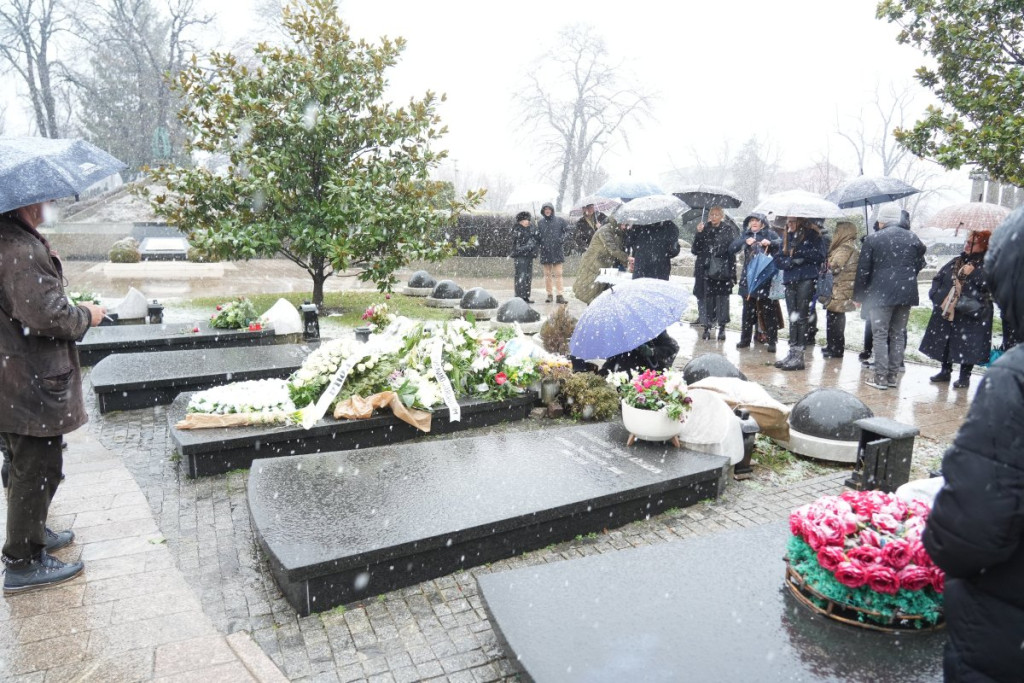 Prva je na pomen stigla Goca Šaulić, a odmah za njom i Šabanova deca Mihajlo, Sanela i Ilda sa porodicama.