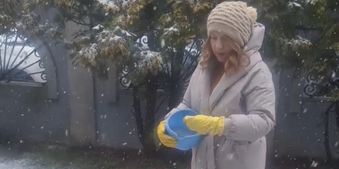 Pevačica je otkrila da sneg za nju ne predstavlja samo zimsku čaroliju, već i idealnu priliku za radove u bašti. Dok je bacala đubrivo, sin je izašao iz kuće i pitao je začuđeno: "Šta radiš to?"