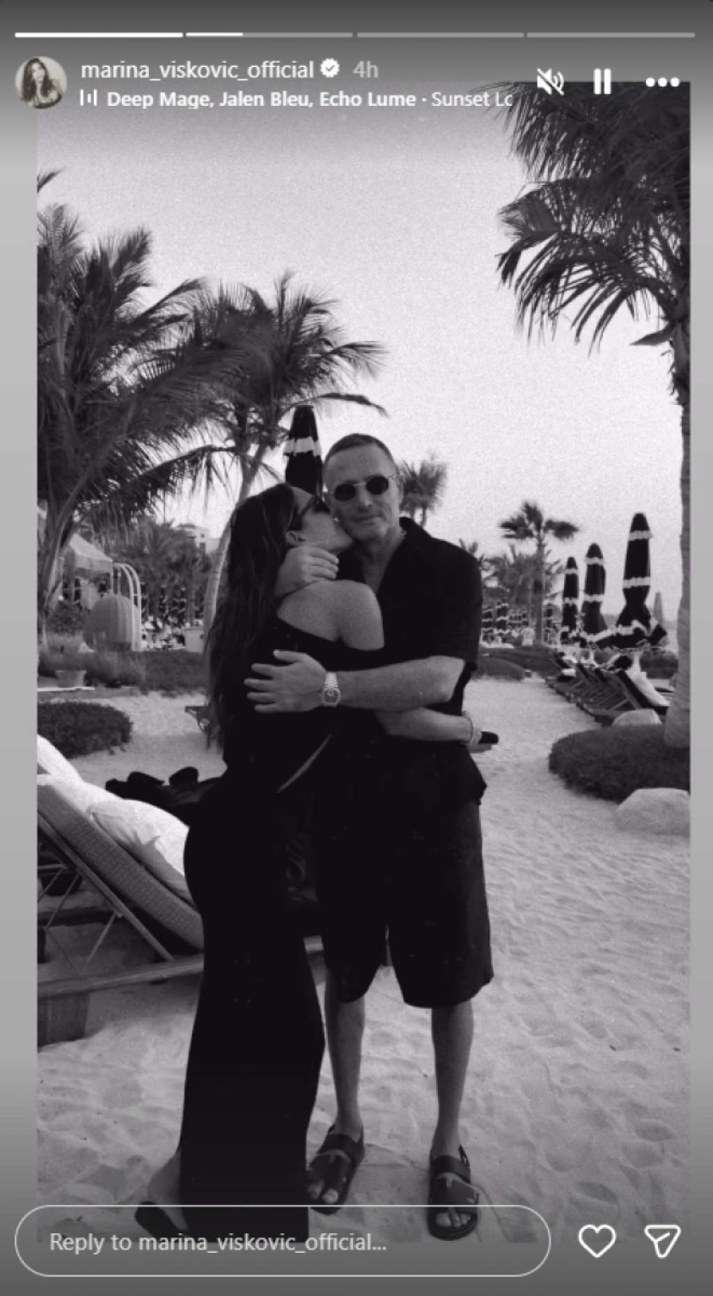 Pevačica je tim povodom na Instagram profilu podelila snimak na kojem razmenjuje nežnosti sa partnerom. Na snimku se vidi kako ga grli i ljubi, dok se on zagonetno smeška, što jasno pokazuje koliko uživa u skladnoj ljubavi.