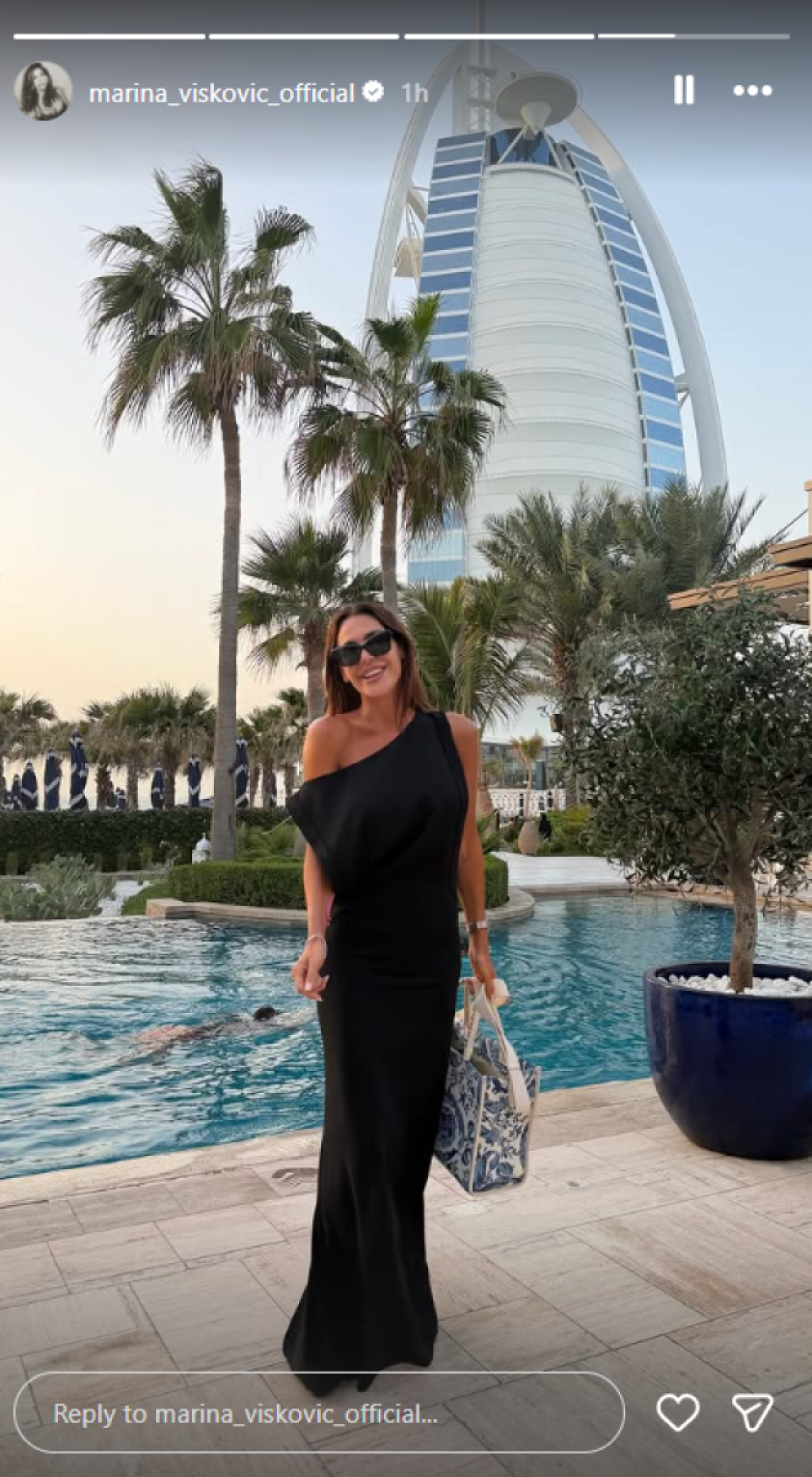 Za večernji izlazak Marina je odabrala lepršavu crnu haljinu, ali ubrzo je "podigla temperaturu" objavivši provokativnu fotografiju u bikiniju sa plaže.
