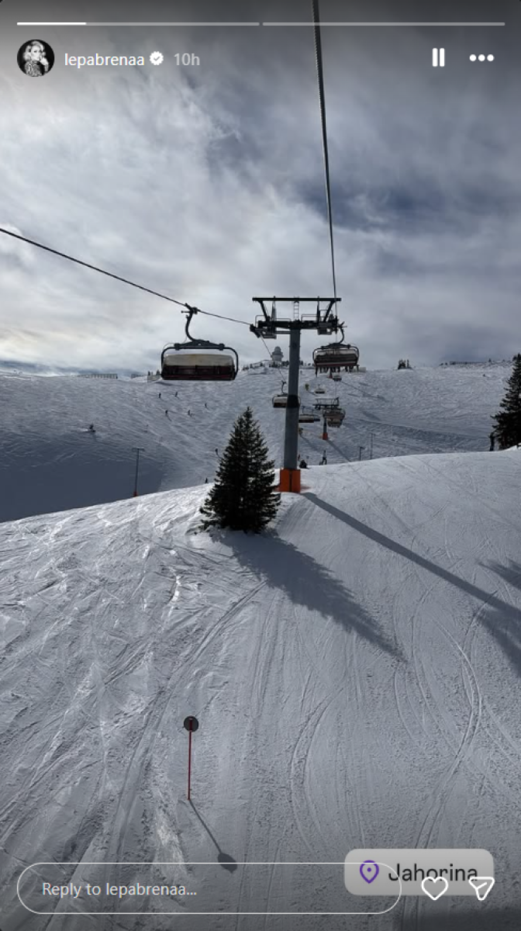 Brena, koja je proteklih dana u centru pažnje zbog navoda da je podigla krov na bespravno sagrađenom objektu na Bežanijskoj kosi, oglasila se sa planine i podelila fotografiju sa žičare, pokazavši da uživa u sunčanom danu i snežnim pejzažima.