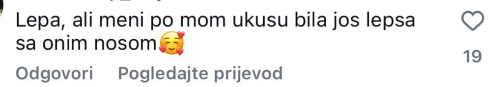 "Nos je savršen kod koga si radila?, " Ne prepoznah ženu, lepo", "Lepa, ali meni, po mom ukusu, bila si još lepša sa onim nosem", pisali su joj pratioci ispod objave.