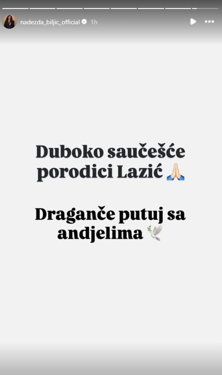 Putem društvenih mreža oglasila se i pevačica Nadežda Biljić, koja se obratila porodici.