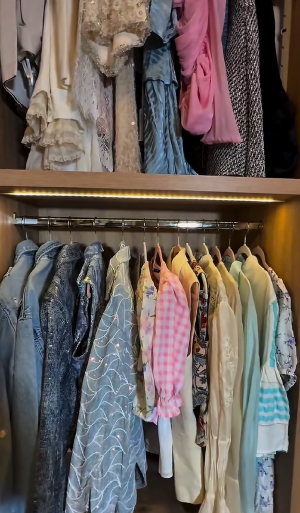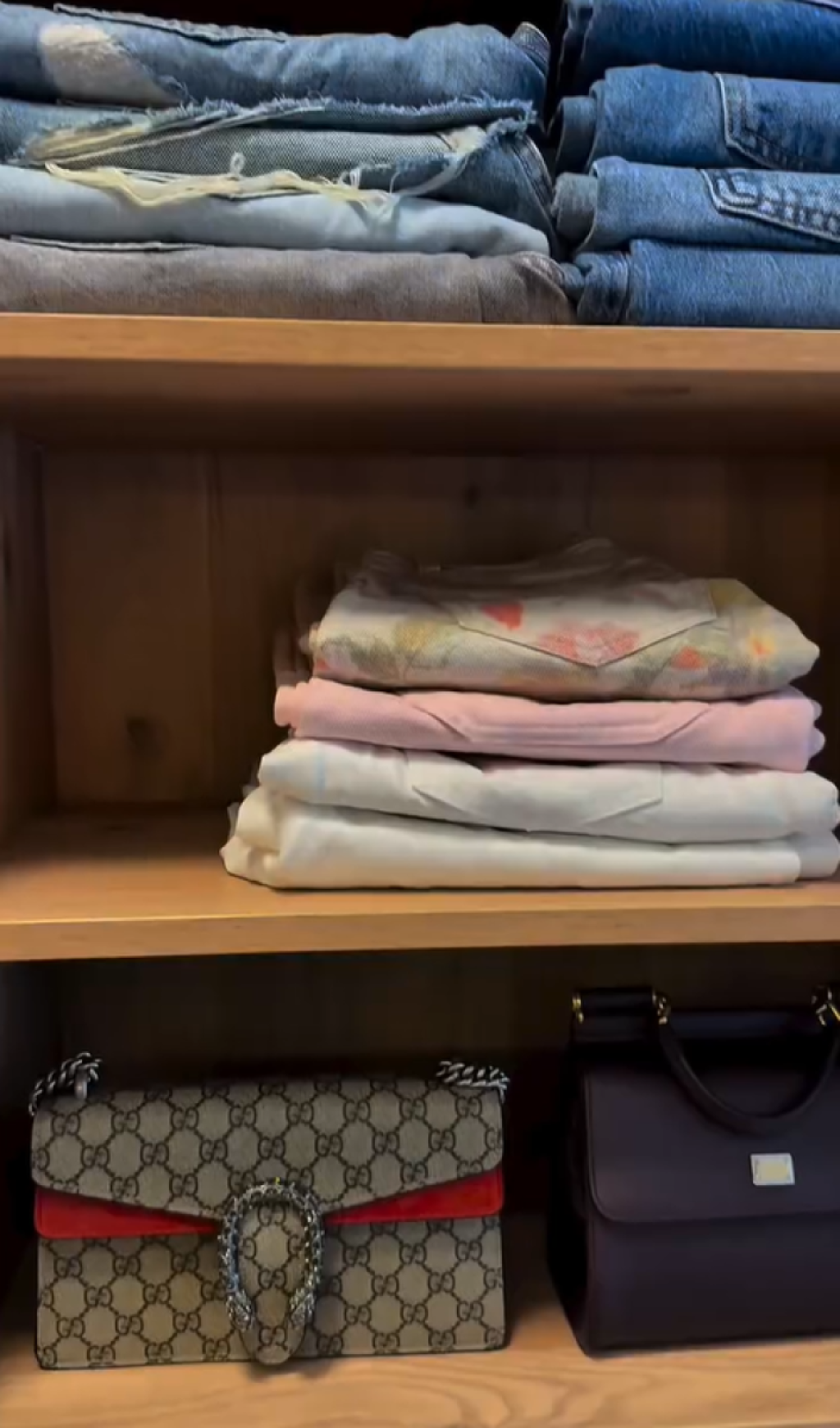U videu, koji je okačila na društvene mreže, se vidi besprekorna organizacija, police složene "pod konac", kao i impresivna kolekcija od čak stotinak pari obuće. Luksuzni komadi, garderoba poznatih svetskih kreatora i brendirani aksesoari dominiraju njenim ormarom, čija se vrednost meri milionima.