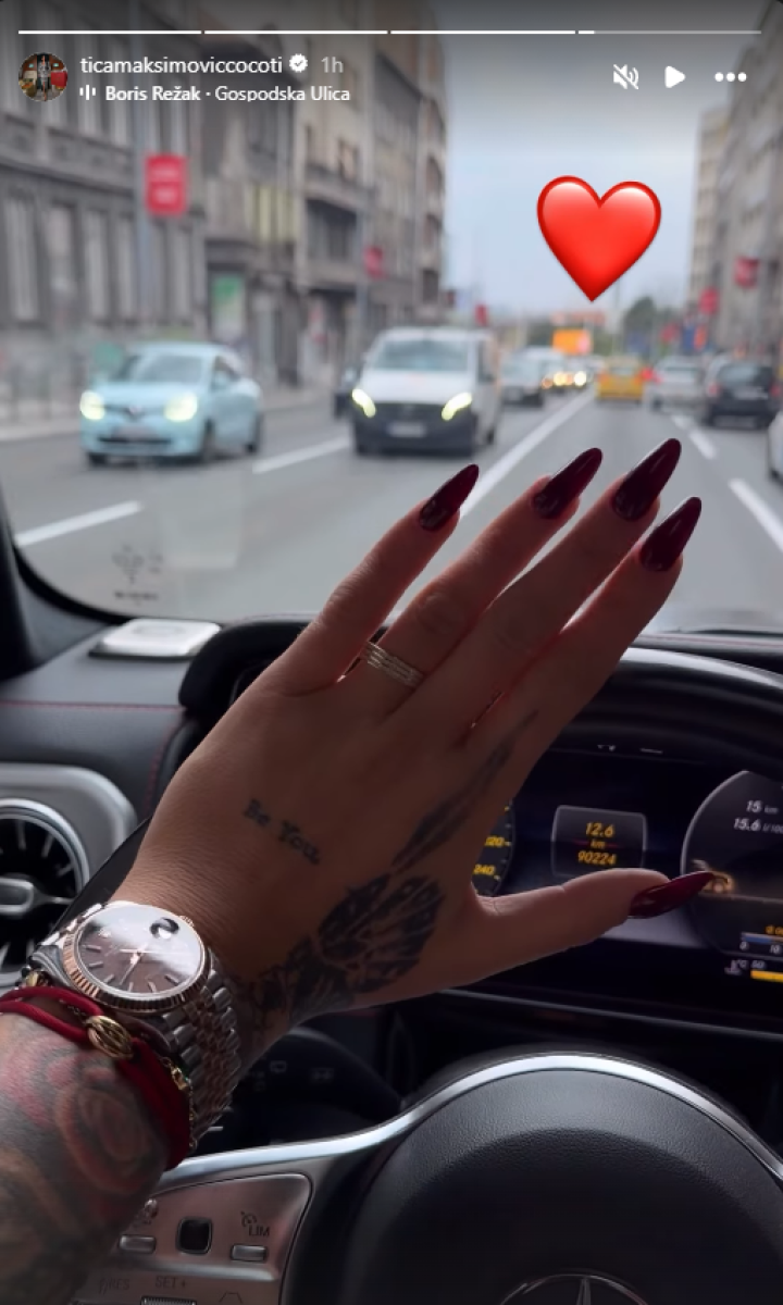 Posebnu pažnju privukao je i automobil vredan čak 140.000 evra, koji je dobila od supruga za Dan zaljubljenih. Upravo tokom vožnje ovog skupocenog vozila, Tijana je iskoristila priliku da zabeleži kadar u kojem se vidi njen novi bračni status.