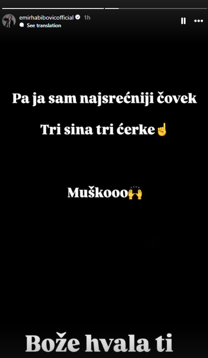 "Tri sina, tri ćerke", napisao je ponosni pevač, jasno stavljajući do znanja da njihova porodica postaje bogatija za još jednog člana, ali i da se ostvaruje njegova velika želja o velikoj i složnoj porodici.