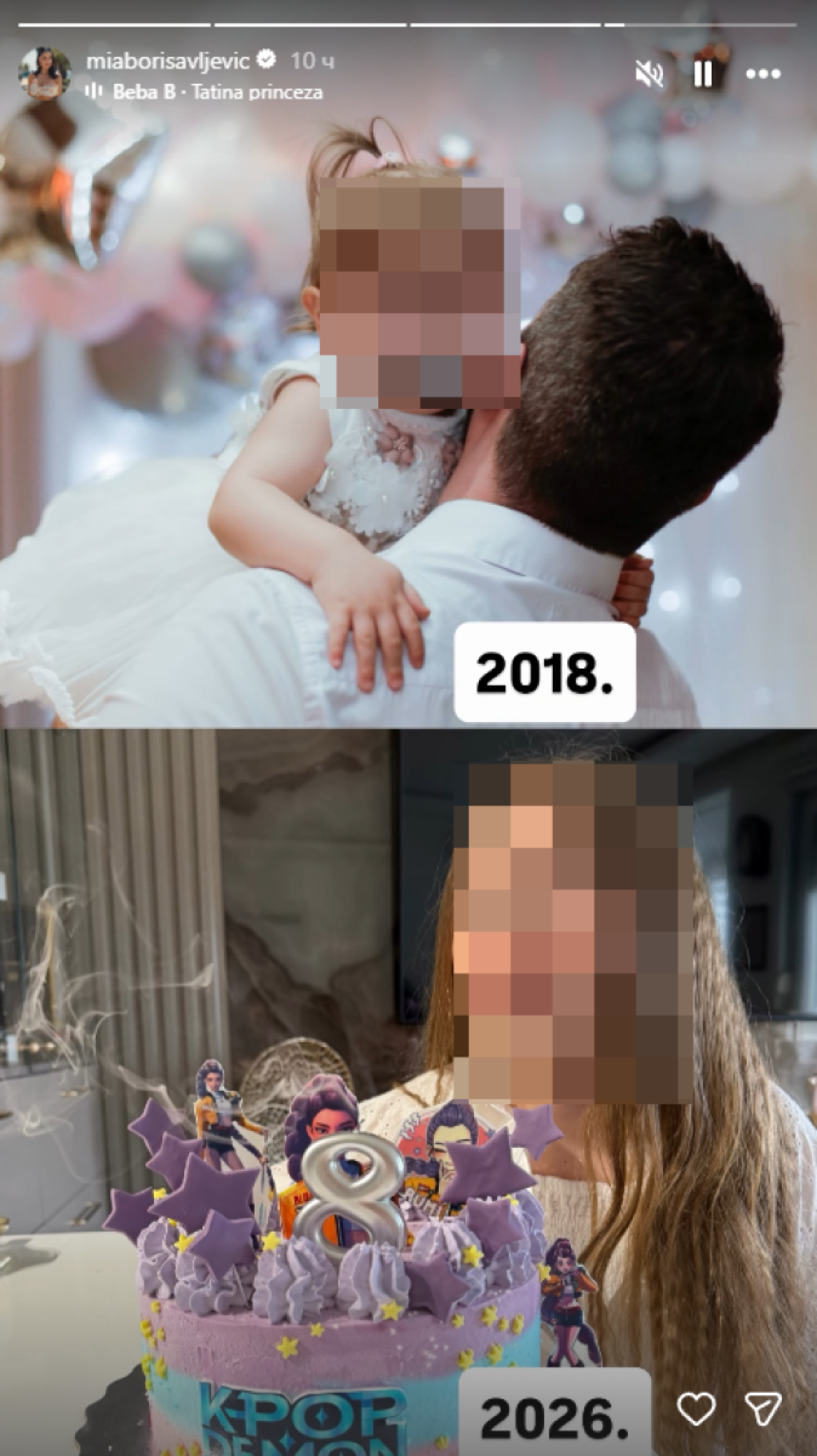 Mia i Bojan su za svoju naslednicu pripremili pravo iznenađenje, pa se pred njom našla prelepa torta u ljubičasto-plavim nijansama sa njenim omiljenim junakinjama iz animiranog filma "K-pop: Lovci na demone", koji je pre nekoliko dana osvojio Oskara.