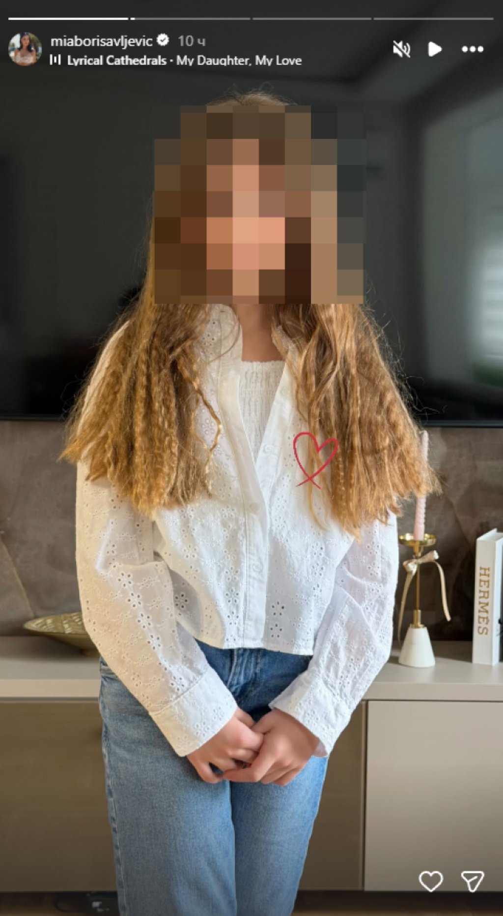 Naime, devojčica je za svoj divan dan zablistala u nežnoj beloj bluzi, a čuvenim "cik-cak" trendom prelomljene kose ukrala je šou.