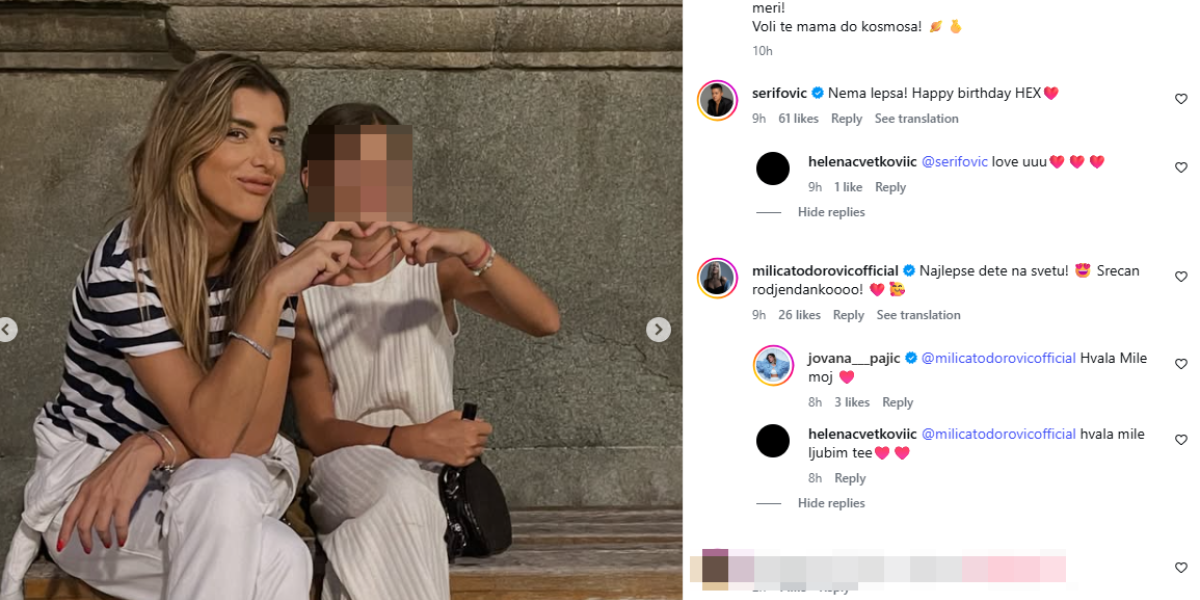 "Nema lepša. Srećan rođendan Heks", obratila se ona Heleni, a lepotom Jovanine naslednice očarana je i pevačica Milica Todorović.