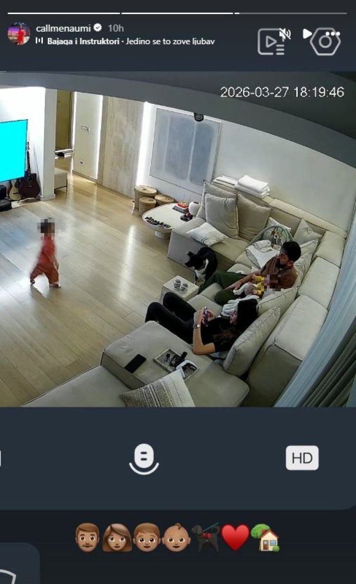 Nedugo zatim, Mina je podelila i snimak iz dnevne sobe, koji je zabeležila nadzorna kamera, a na kojem se vidi kako ona i Ognjen zajedno sa decom uživaju u opuštenim, porodičnim trenucima.