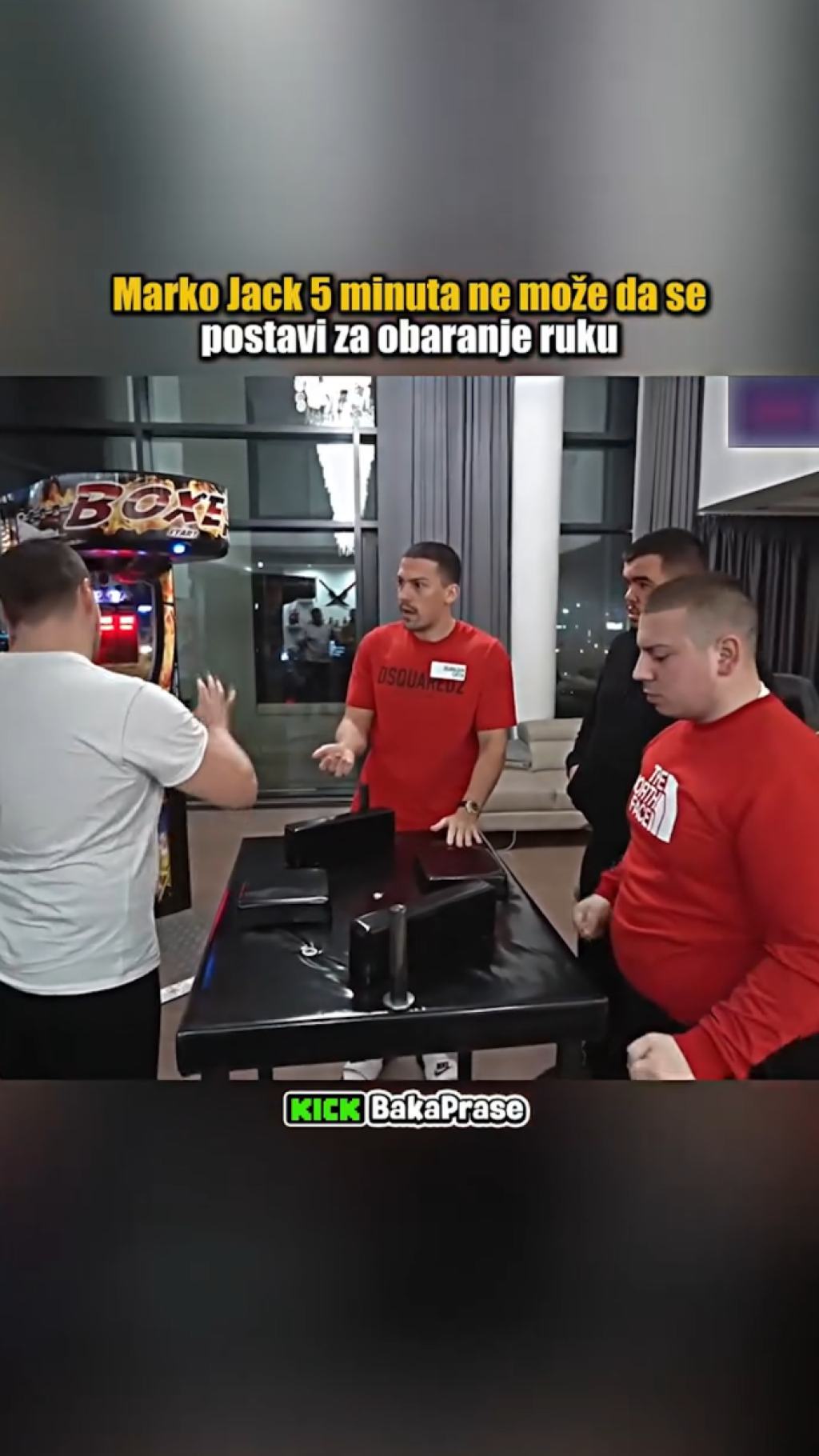 Naime, Baka je nameštao Marka i Duku za odmeravanje snaga, ali Džeku nije bilo jasno kako da namesti ruku dok su mu svi okolo objašnjavali kako da bude pravilno.