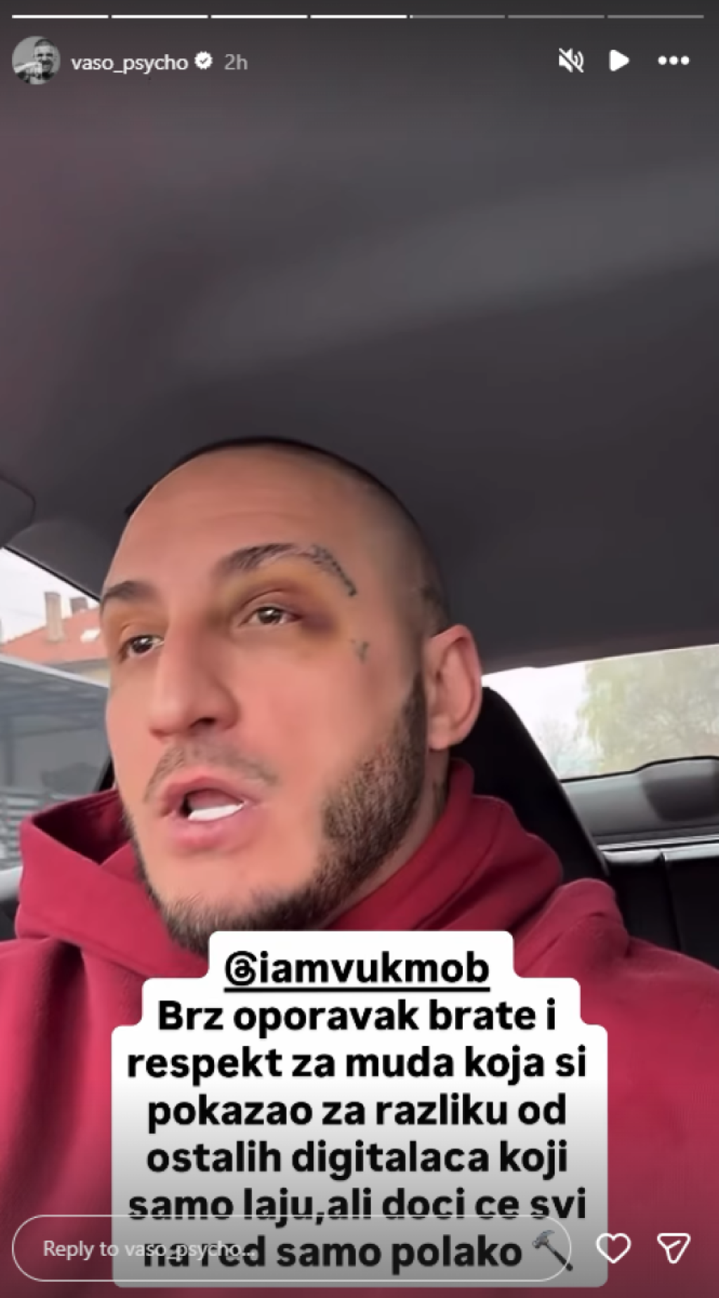 Nakon što je saznao da njegov protivnik trpi ozbiljne posledice Vaso mu se javno obratio porukom Instagramu.