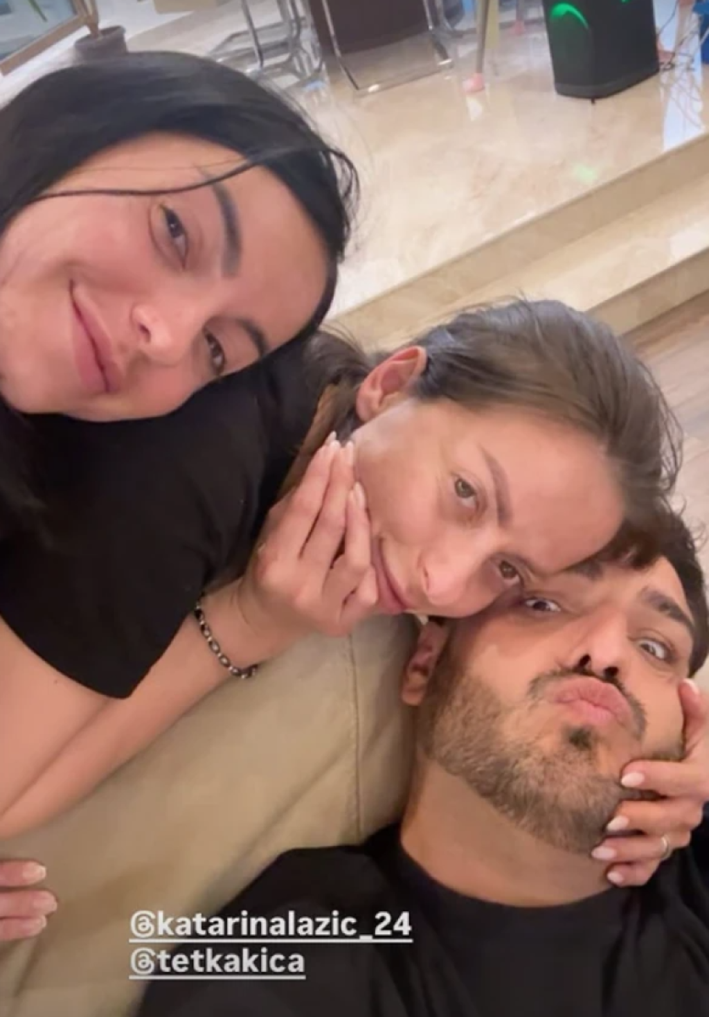 Na fotografiji su mu društvo pravile supruga Katarina i njena sestra Kristina, a svi zajedno su zabeležili opušten trenutak dok je pevač odmarao na dvosedu.