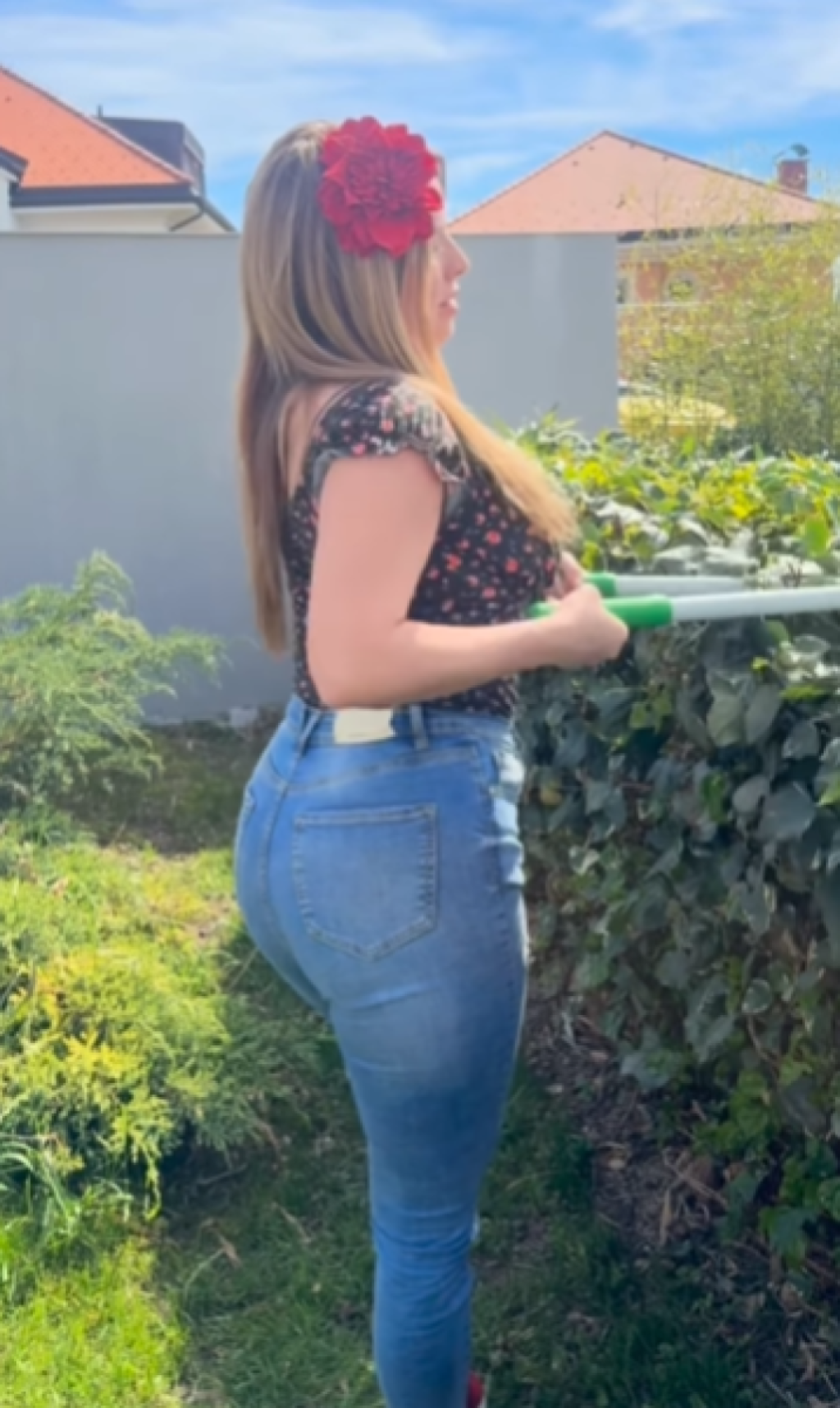 Ipak, uprkos tome što je akcenat bio na sređivanju dvorišta, njeni pratioci su, po običaju, najviše pažnje obratili na njen izgled. Nives je za ovu priliku odabrala uske farmerke koje su istakle njene obline, dok je majica sa dubokim dekolteom dodatno podigla temperaturu.
